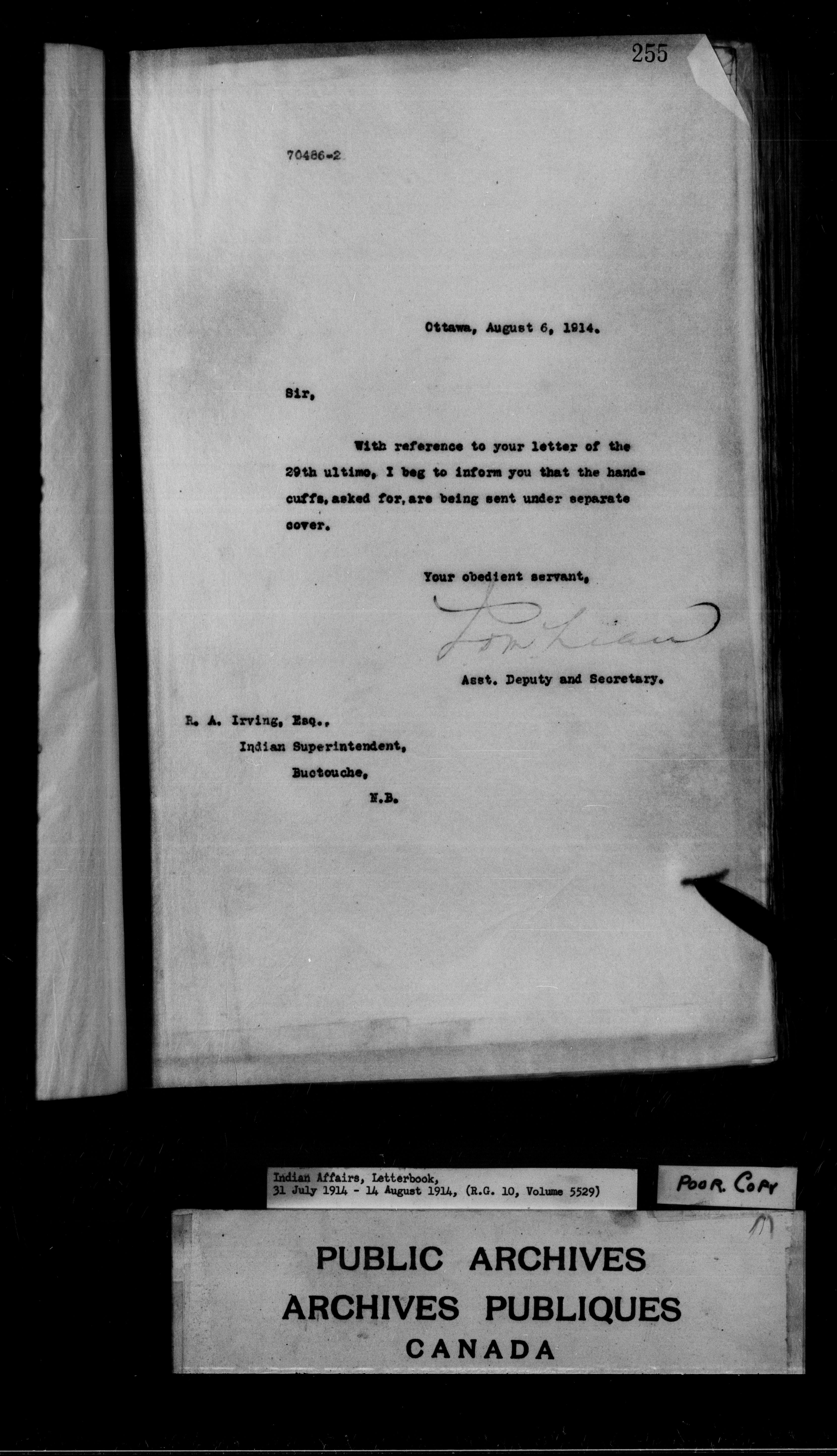 Department of Indian Affairs : Departmental letterbooks : C-8886