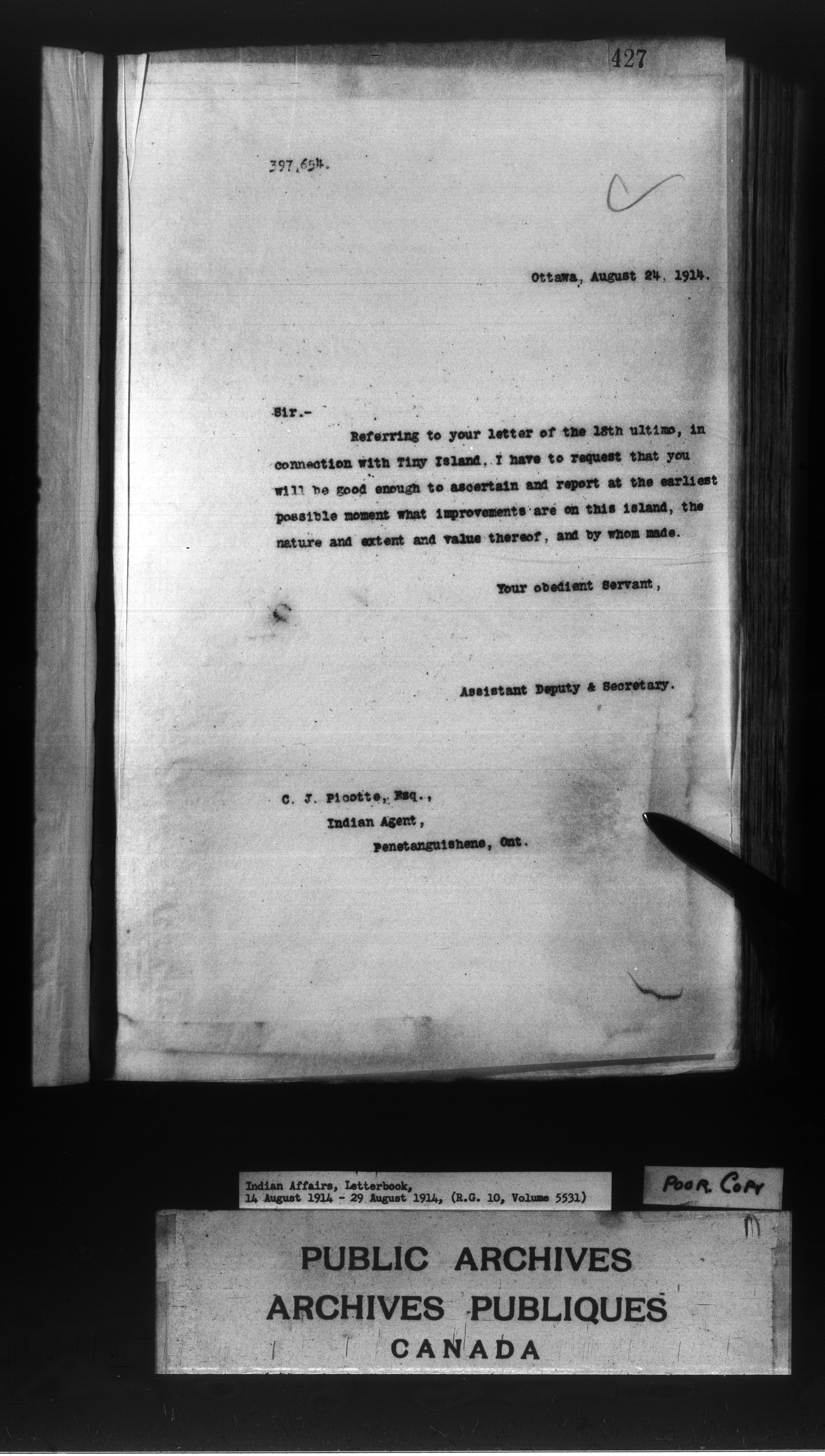 Department of Indian Affairs : Letterbooks of out-going correspondence relating to the administration of Indian Affairs in both eastern and western Canada, 1871-1920 - 8887