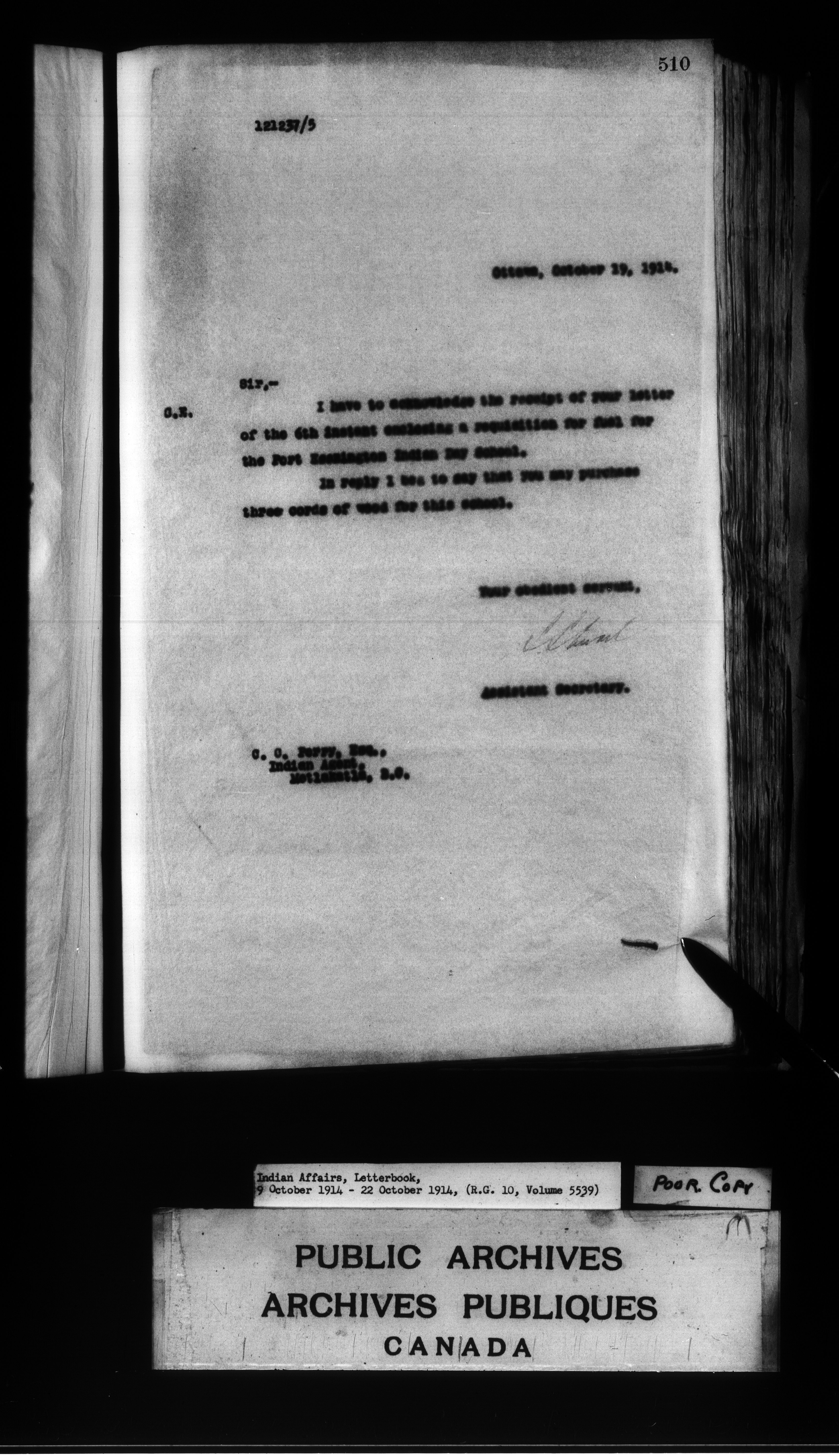 Department of Indian Affairs : Letterbooks of out-going correspondence relating to the administration of Indian Affairs in both eastern and western Canada, 1871-1920 - 8890