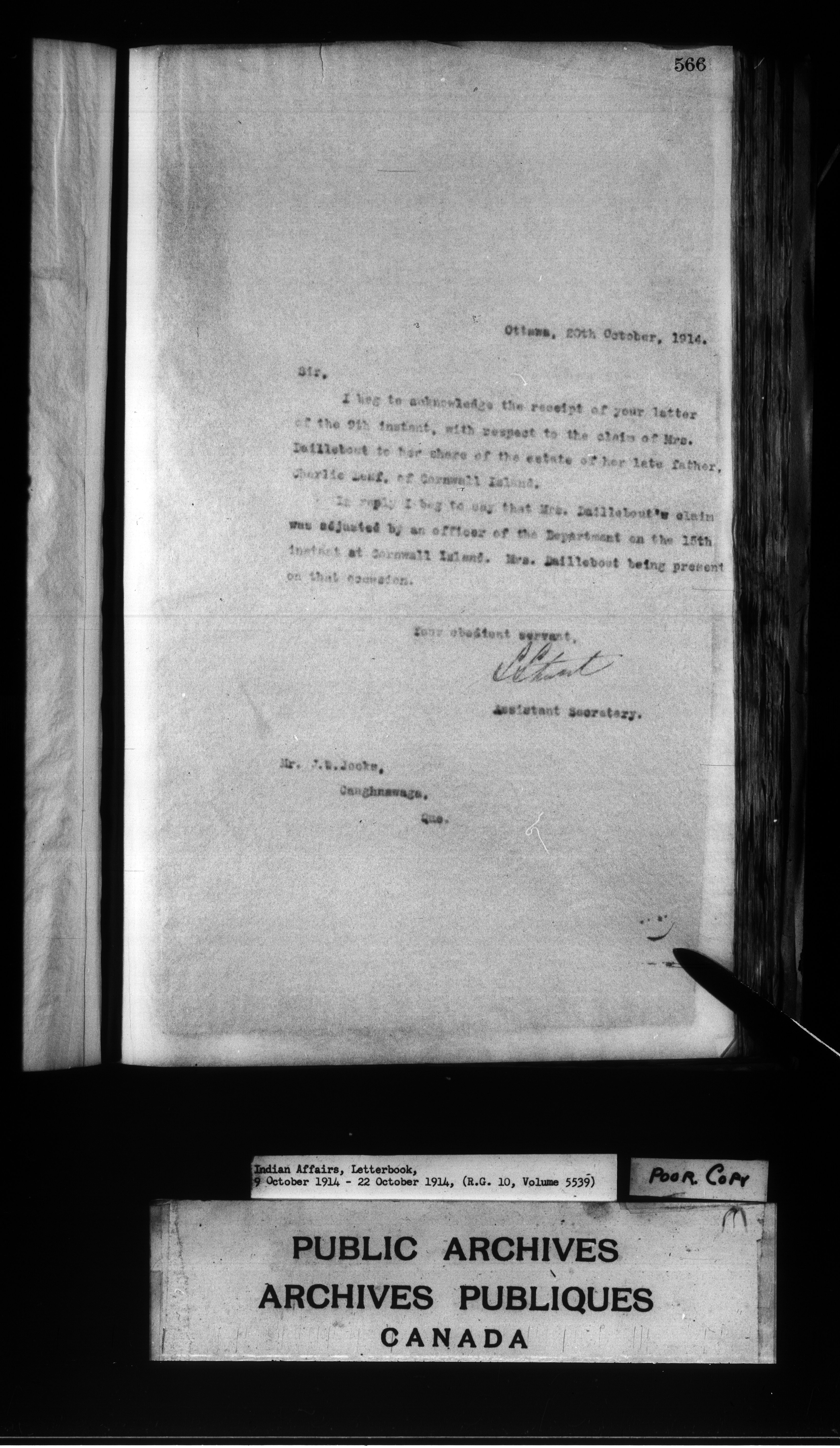 Department of Indian Affairs : Letterbooks of out-going correspondence relating to the administration of Indian Affairs in both eastern and western Canada, 1871-1920 - 8890