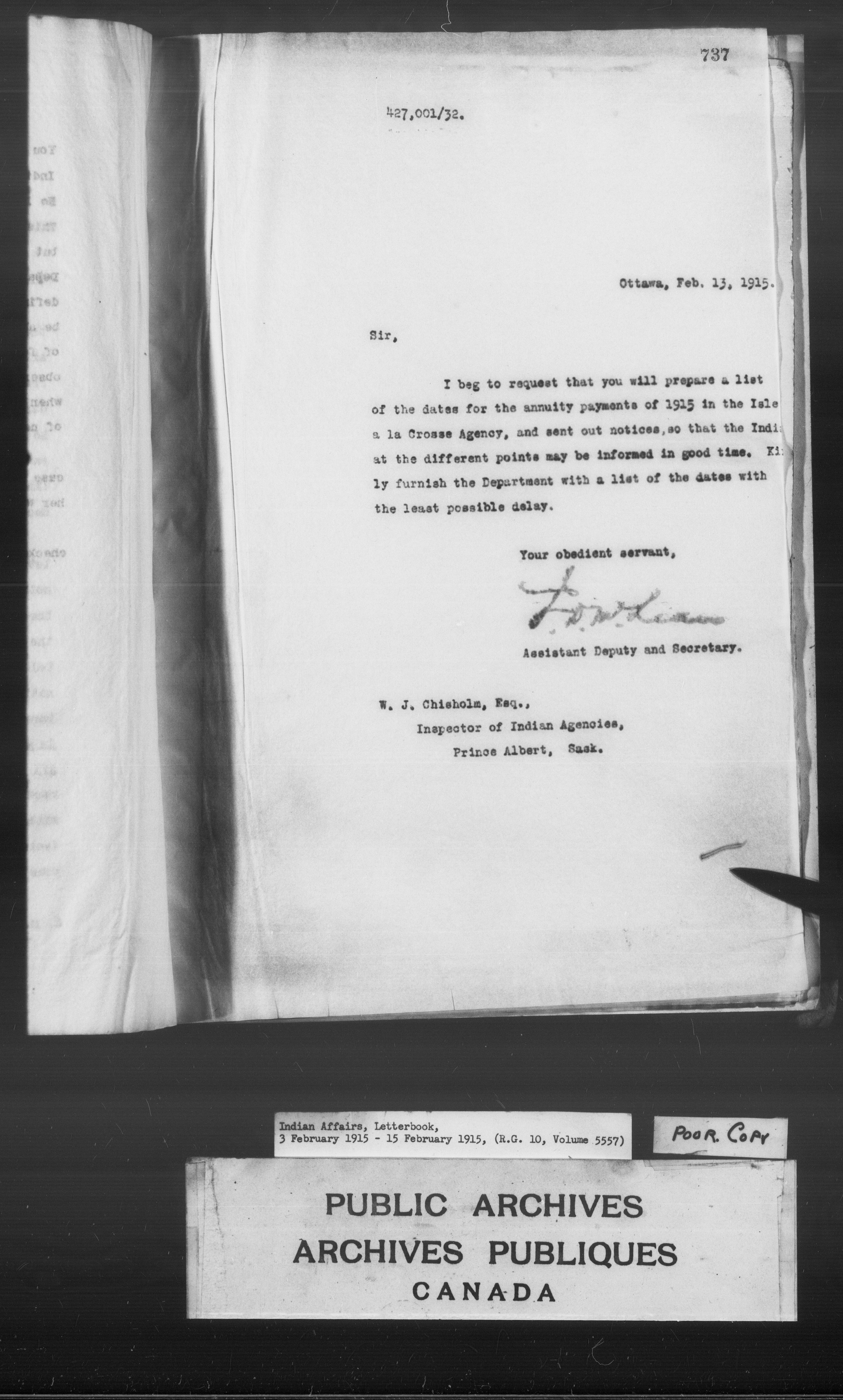 Department of Indian Affairs : Letterbooks of out-going correspondence relating to the administration of Indian Affairs in both eastern and western Canada, 1871-1920 - 8897