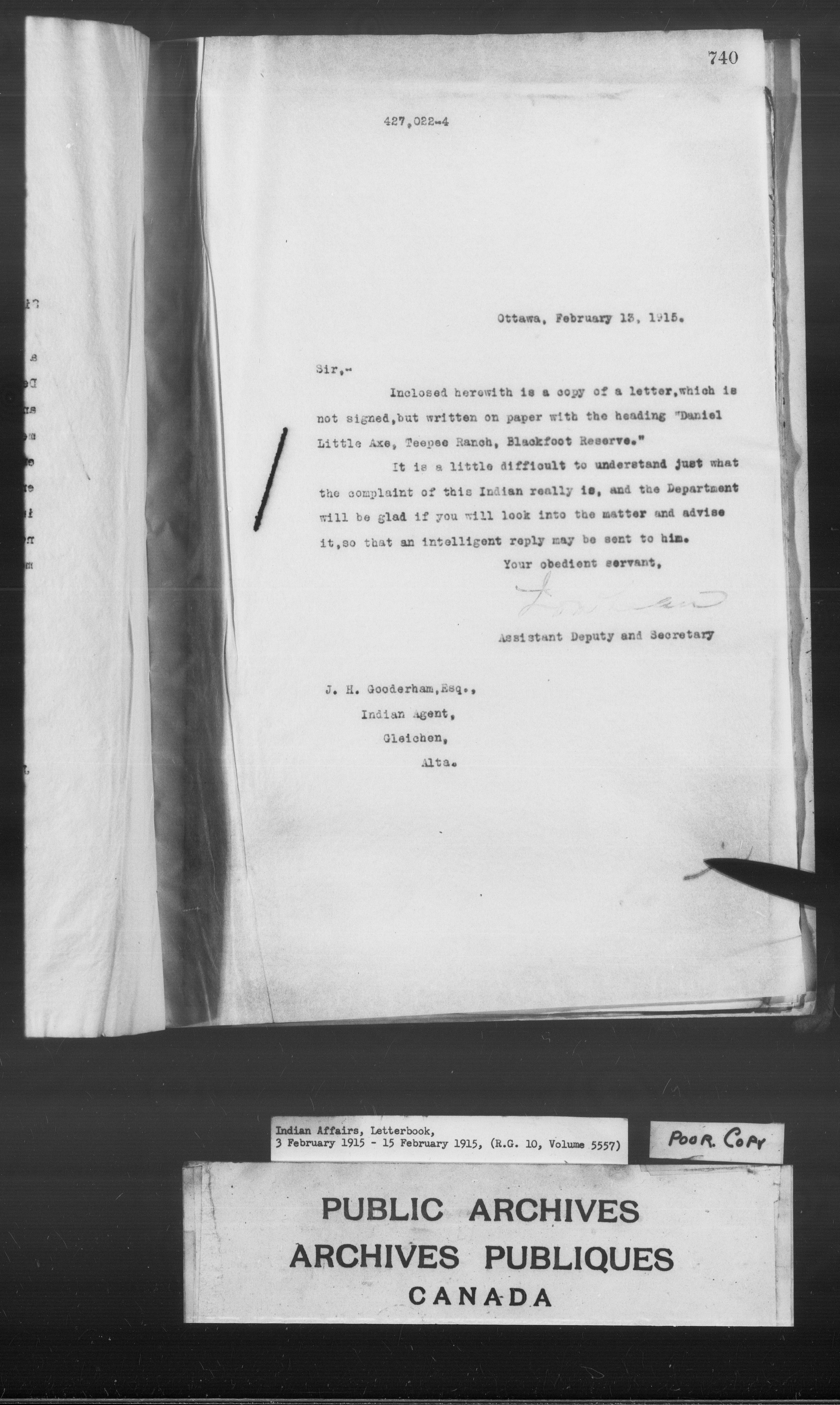 Department of Indian Affairs : Letterbooks of out-going correspondence relating to the administration of Indian Affairs in both eastern and western Canada, 1871-1920 - 8897