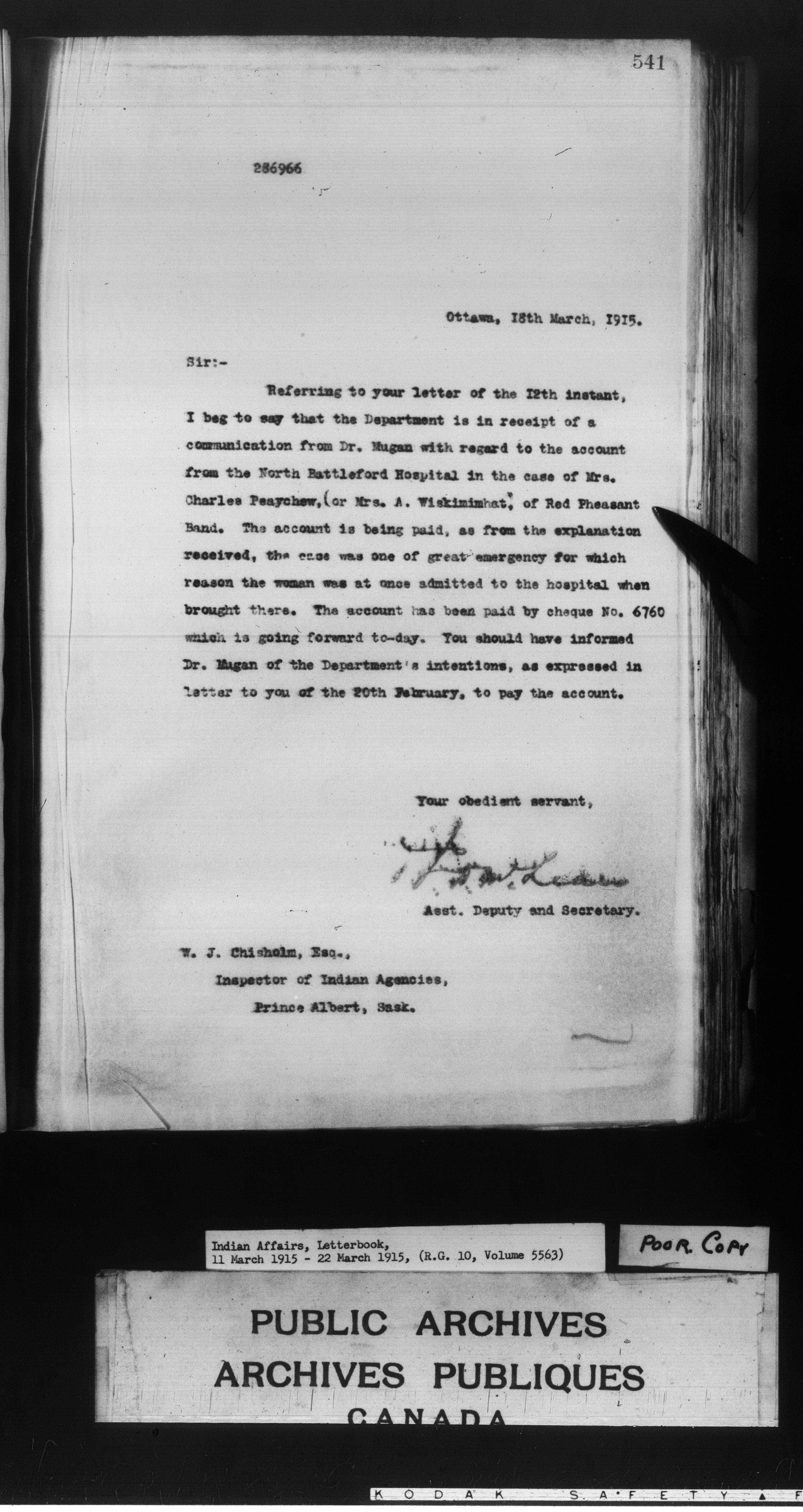 Department of Indian Affairs : Departmental letterbooks : C-8899