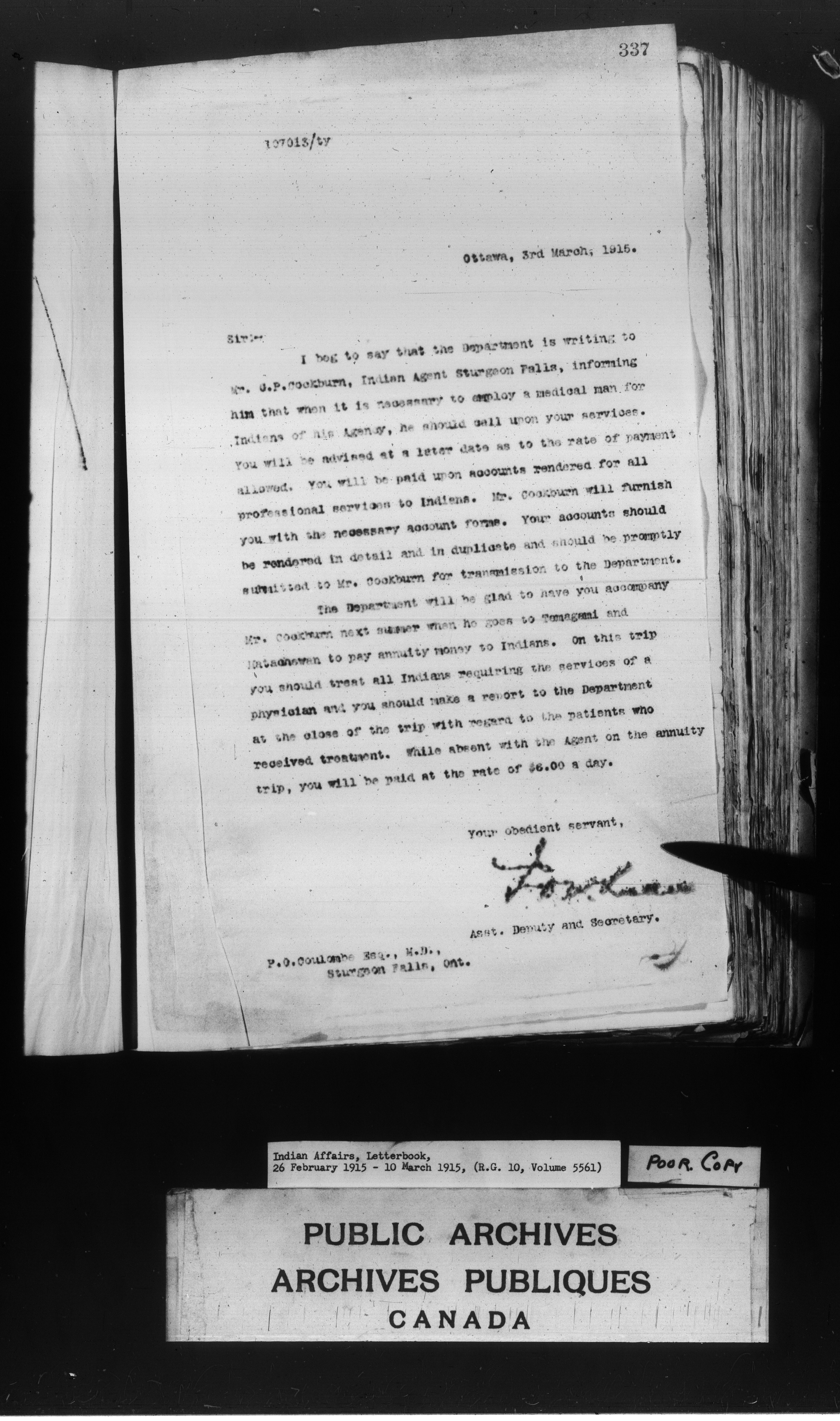Department of Indian Affairs : Letterbooks of out-going correspondence relating to the administration of Indian Affairs in both eastern and western Canada, 1871-1920 - 8899