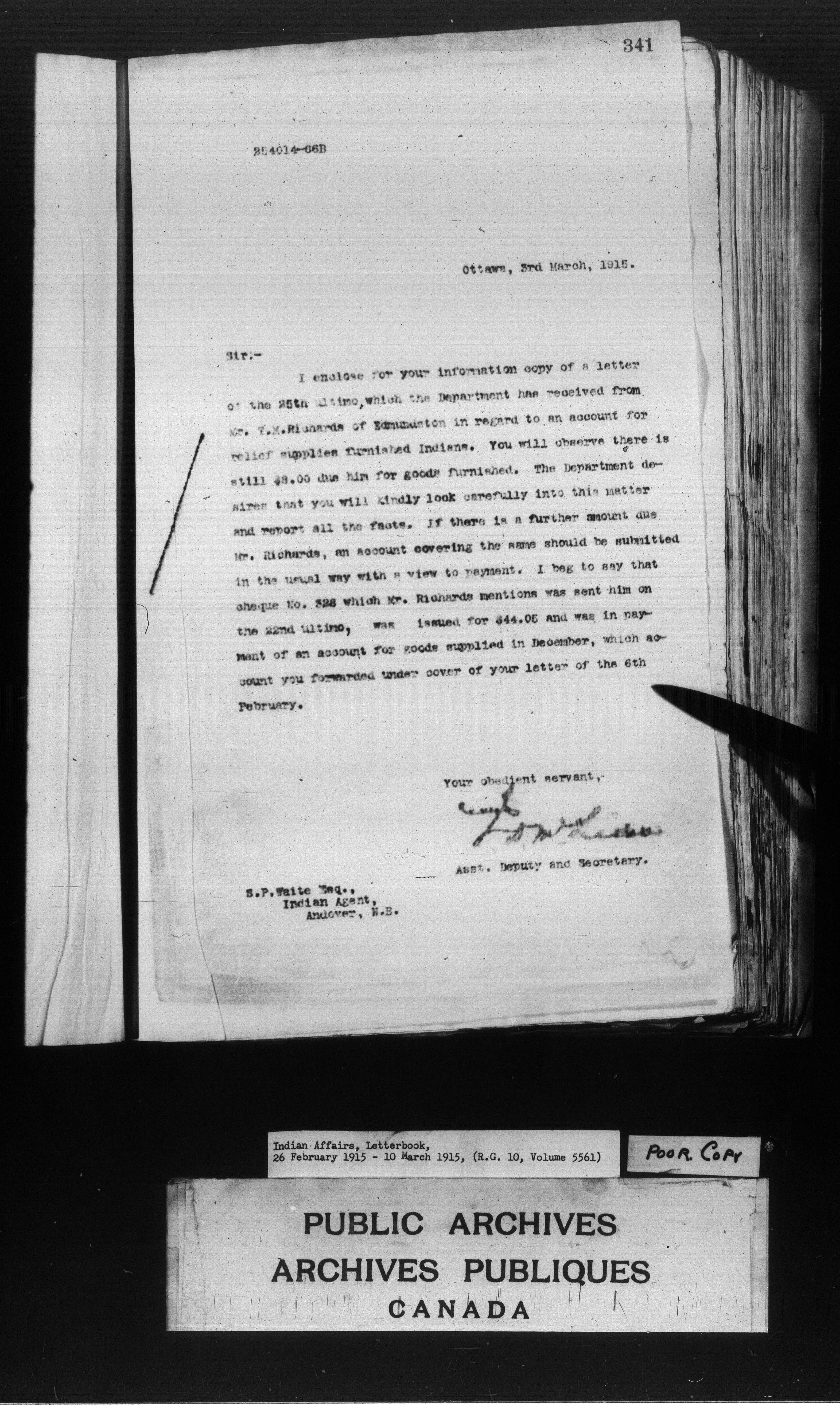 Department of Indian Affairs : Letterbooks of out-going correspondence relating to the administration of Indian Affairs in both eastern and western Canada, 1871-1920 - 8899