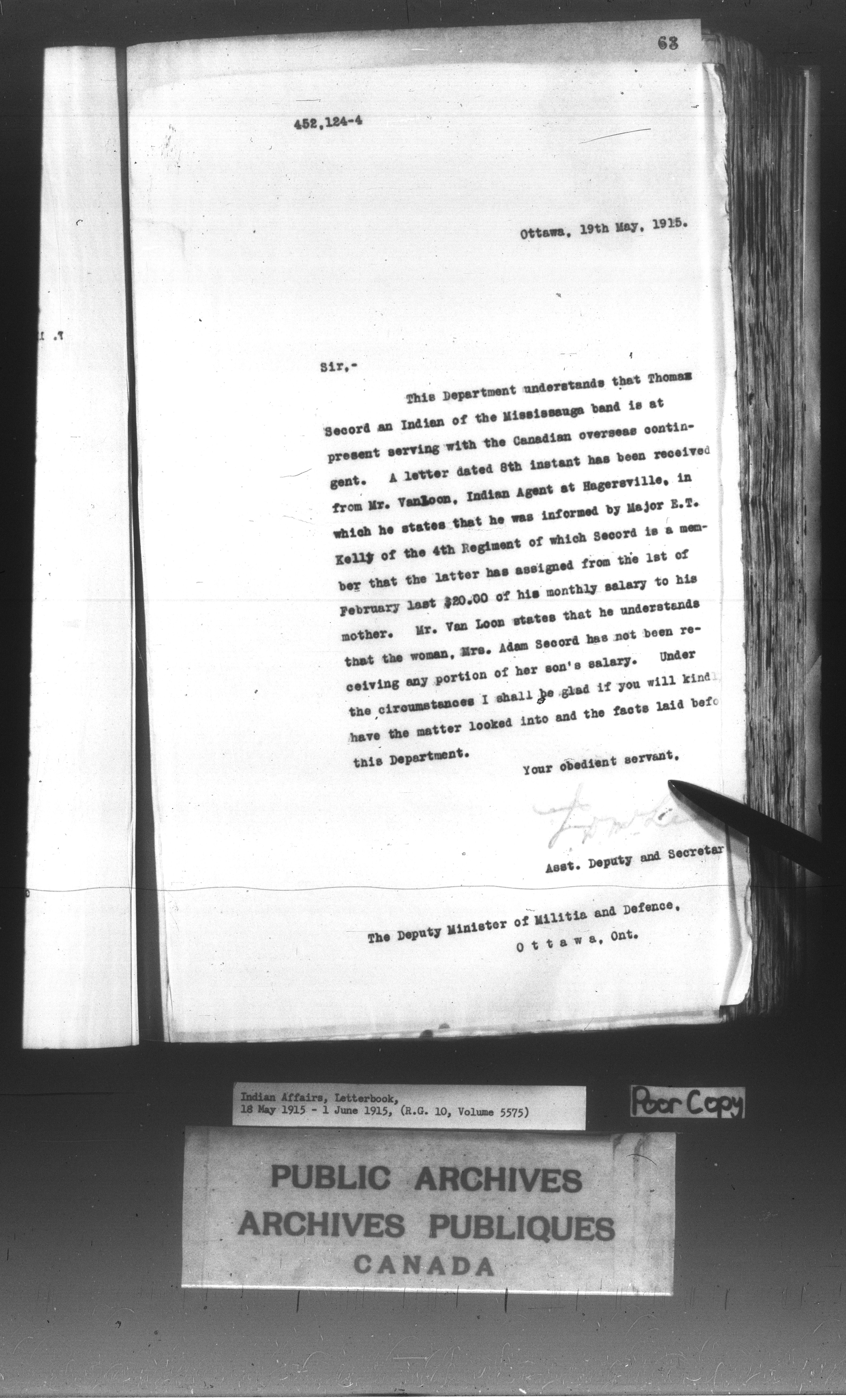Department of Indian Affairs : Letterbooks of out-going correspondence relating to the administration of Indian Affairs in both eastern and western Canada, 1871-1920 - 8904