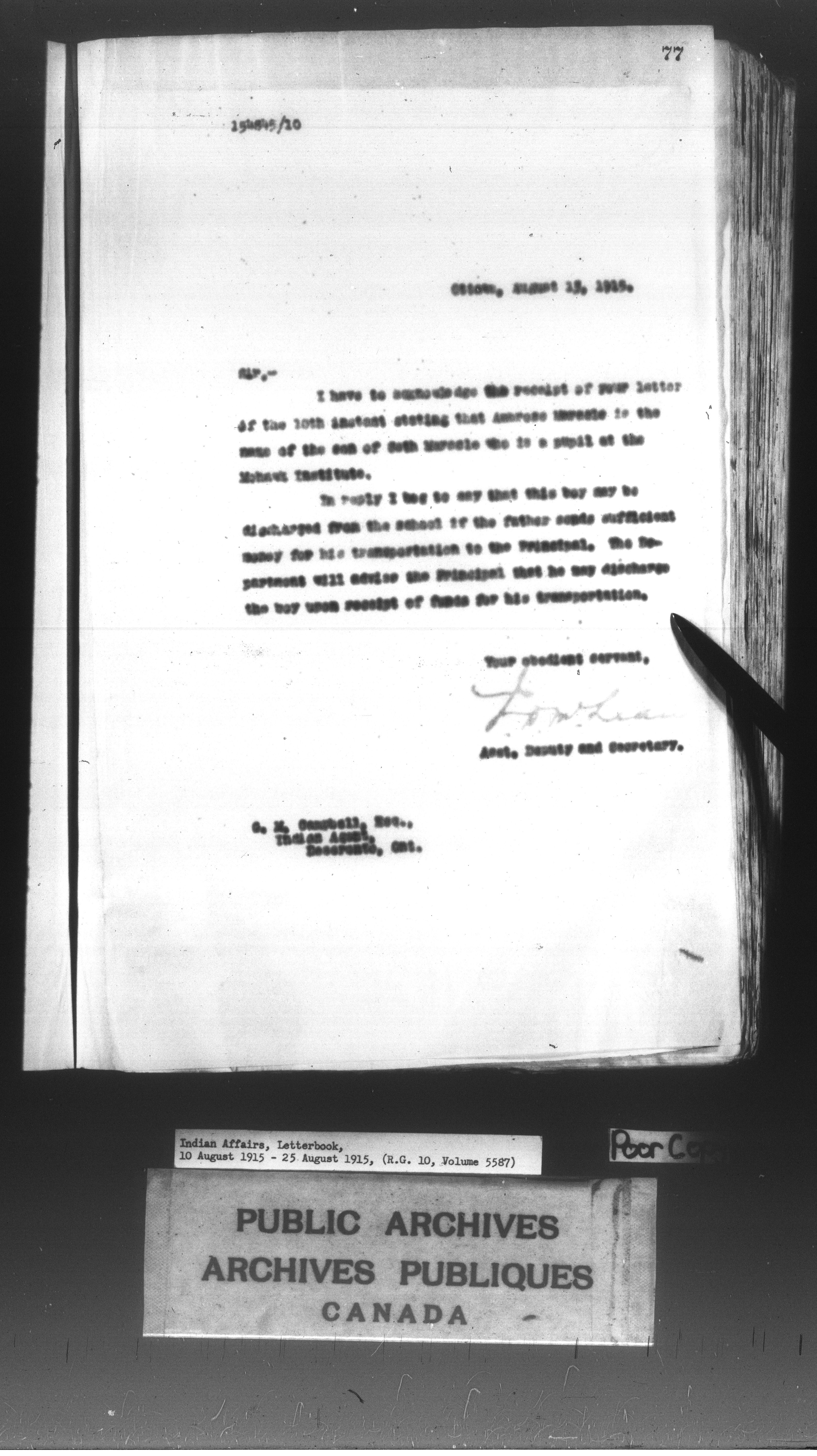 Department of Indian Affairs : Letterbooks of out-going correspondence relating to the administration of Indian Affairs in both eastern and western Canada, 1871-1920 - 8908