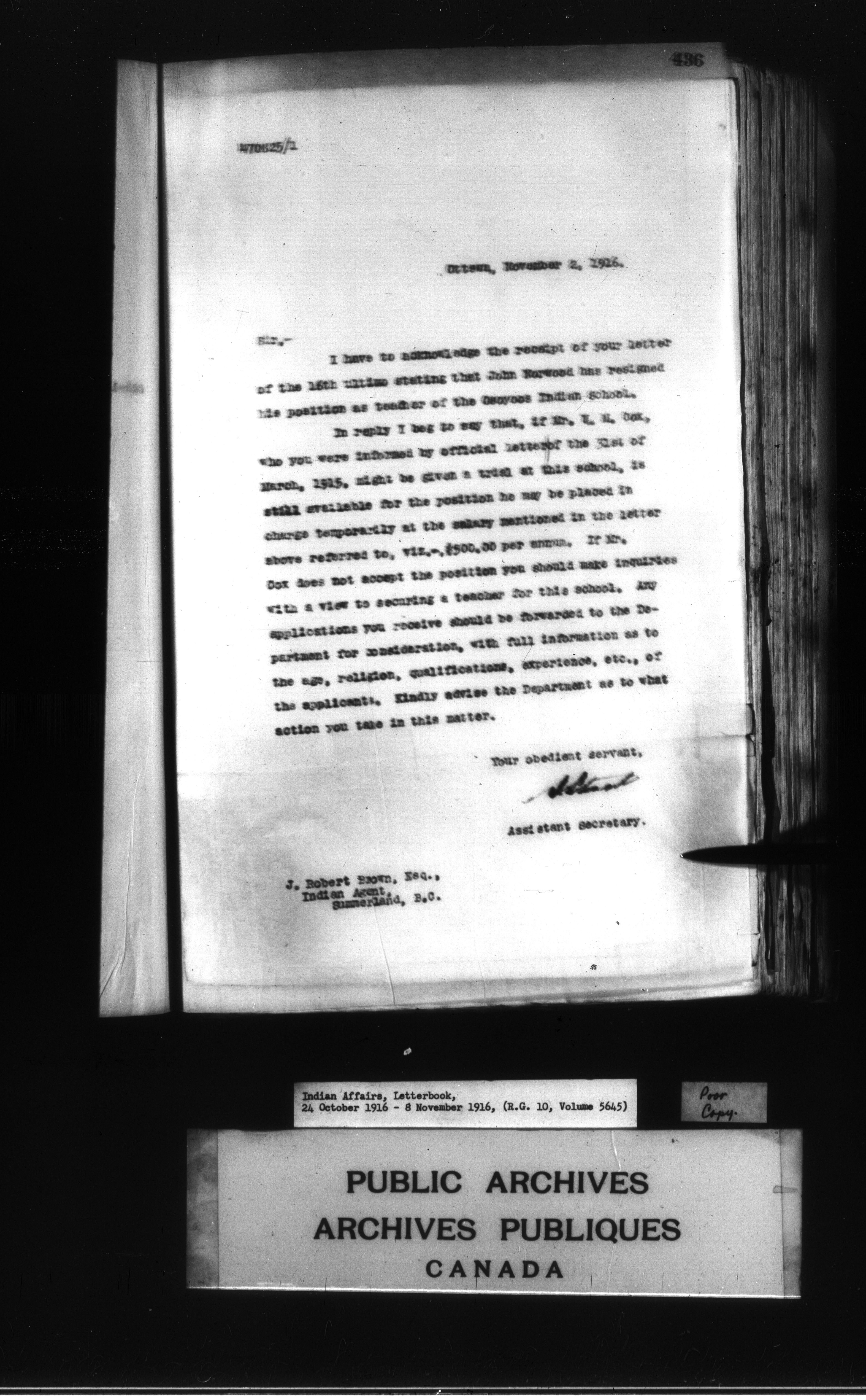 Department of Indian Affairs : Letterbooks of out-going correspondence relating to the administration of Indian Affairs in both eastern and western Canada, 1871-1920 - 8929
