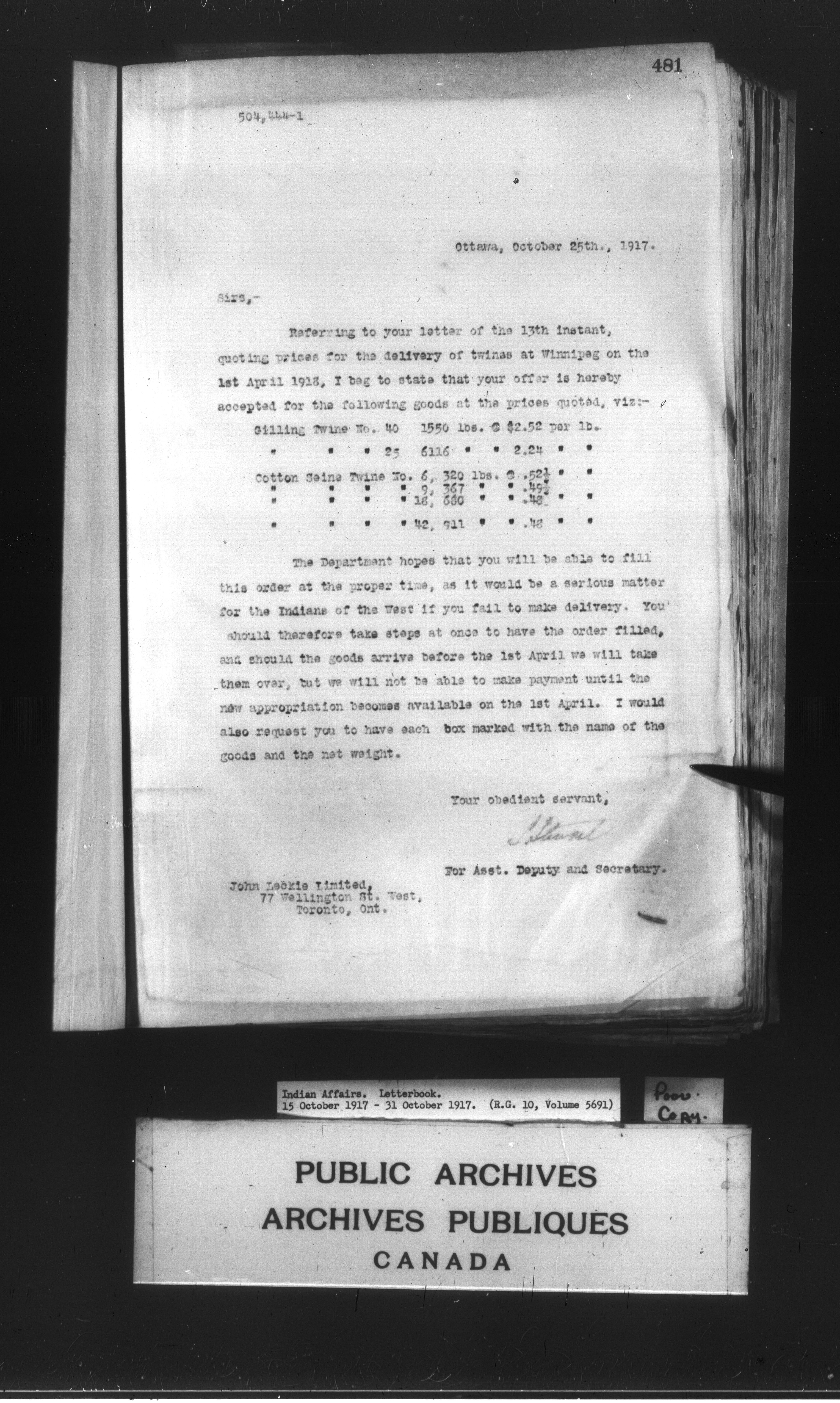 Department of Indian Affairs : Letterbooks of out-going correspondence relating to the administration of Indian Affairs in both eastern and western Canada, 1871-1920 - 8946