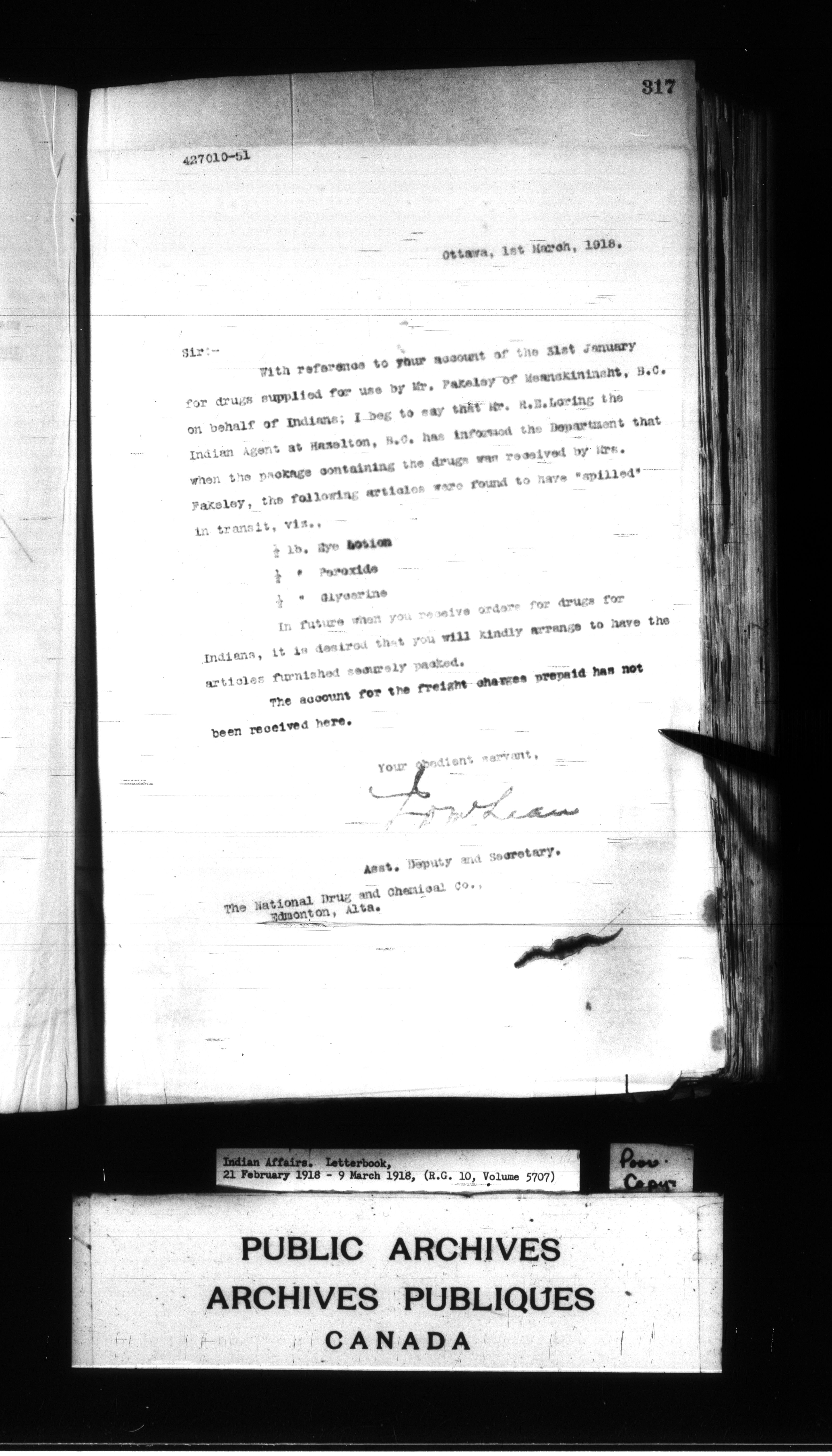 Department of Indian Affairs : Departmental letterbooks : C-8951