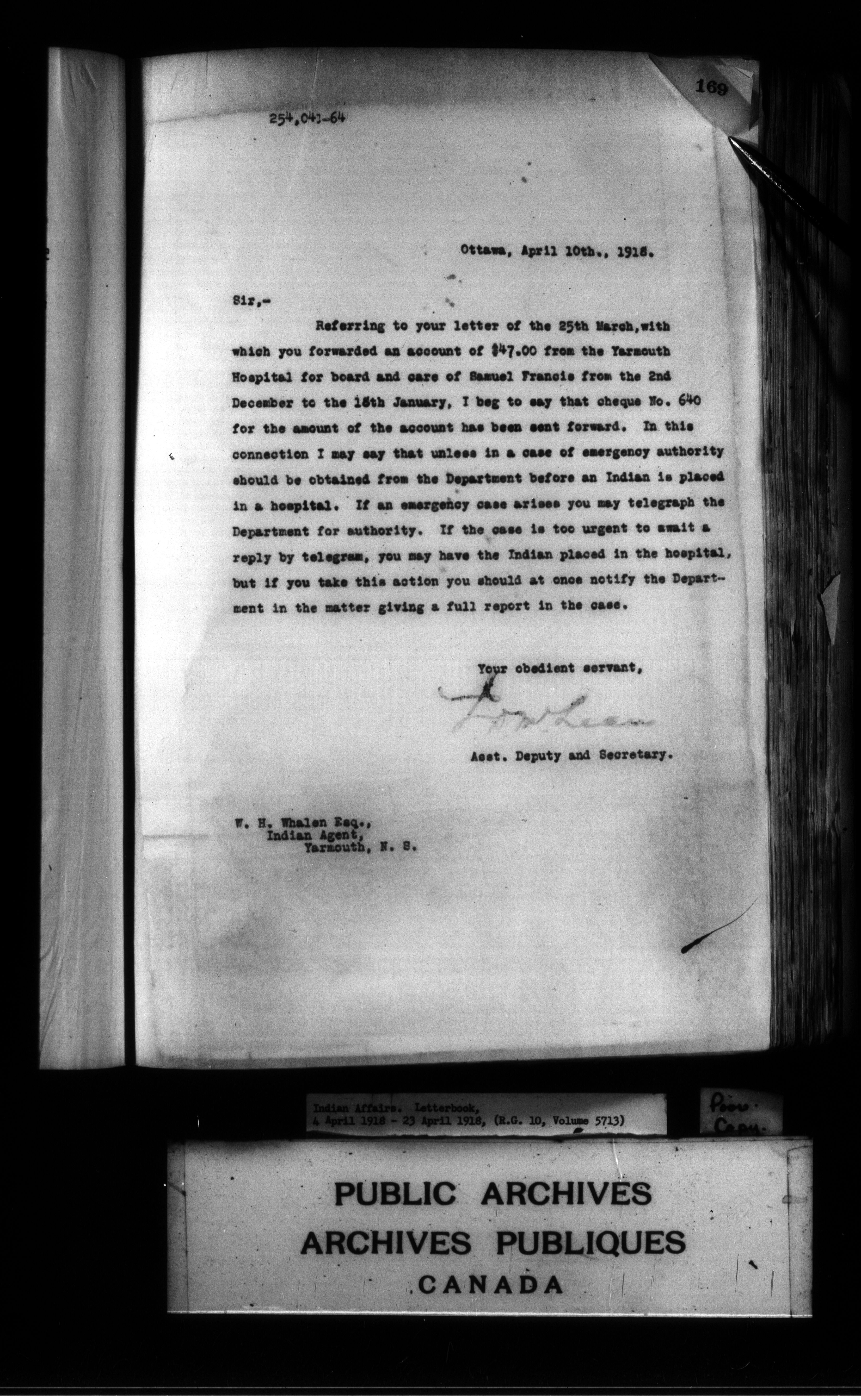 Department of Indian Affairs : Letterbooks of out-going correspondence relating to the administration of Indian Affairs in both eastern and western Canada, 1871-1920 - 8953