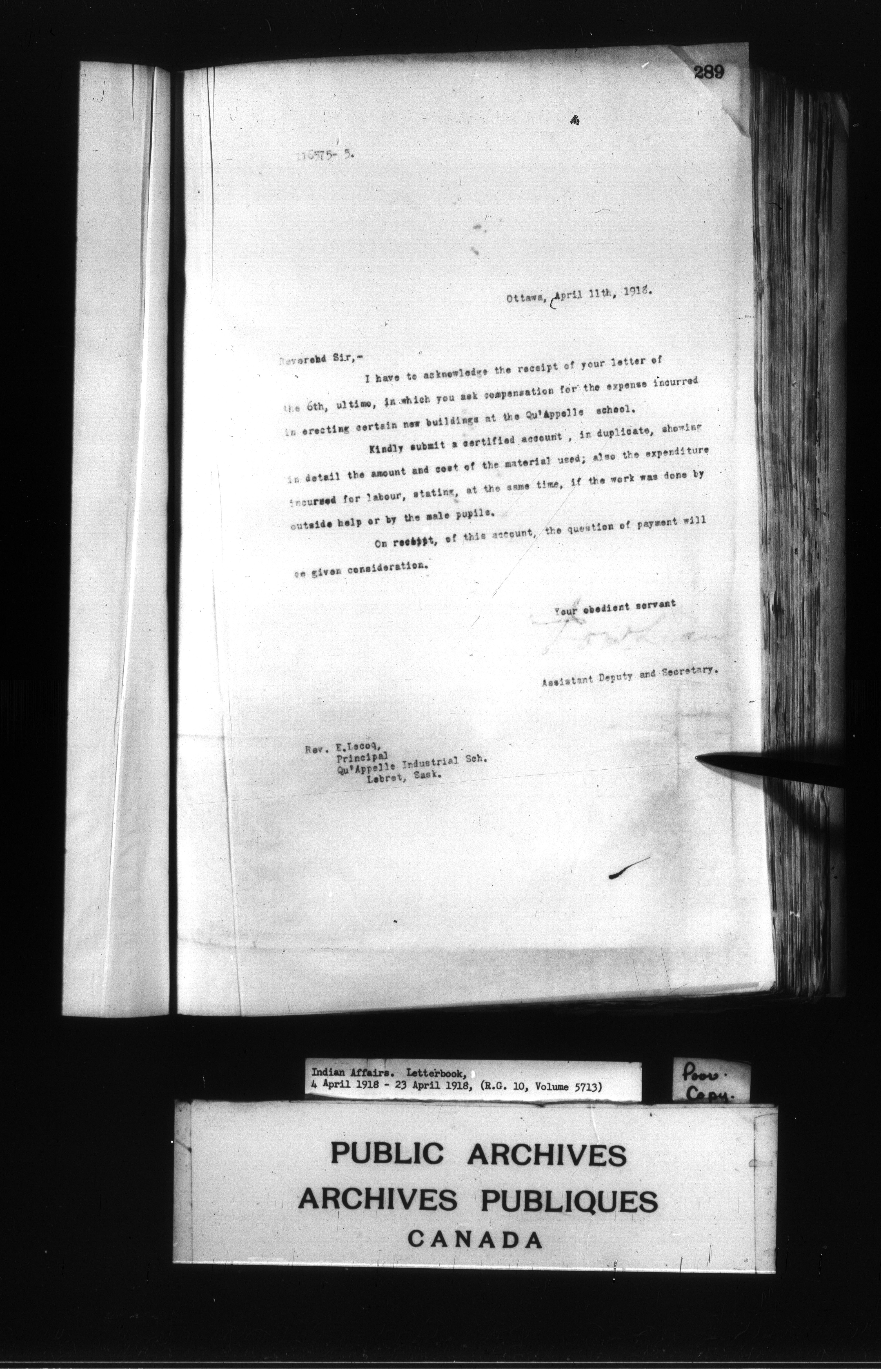 Department of Indian Affairs : Letterbooks of out-going correspondence relating to the administration of Indian Affairs in both eastern and western Canada, 1871-1920 - 8954