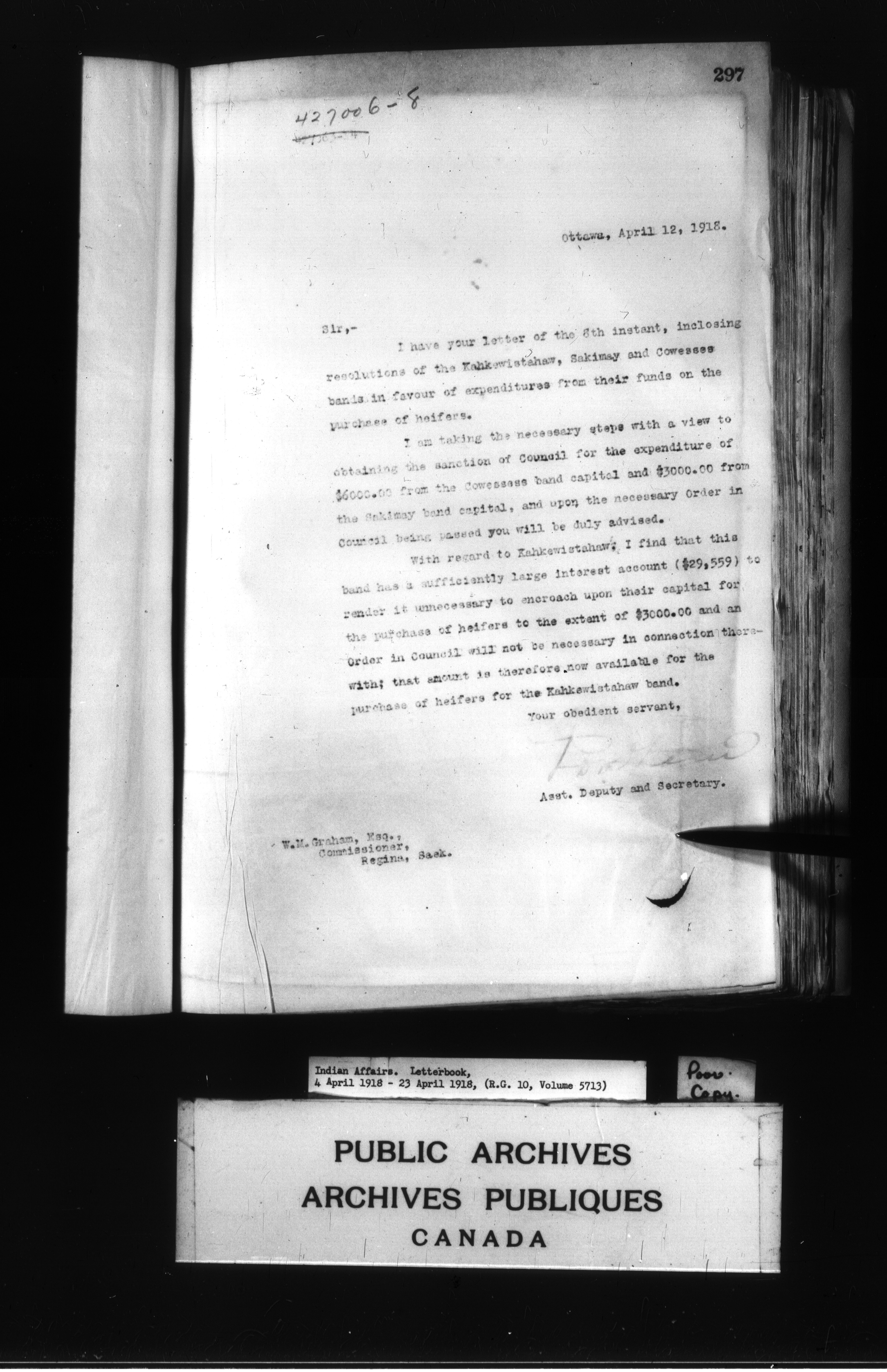 Department of Indian Affairs : Letterbooks of out-going correspondence relating to the administration of Indian Affairs in both eastern and western Canada, 1871-1920 - 8954