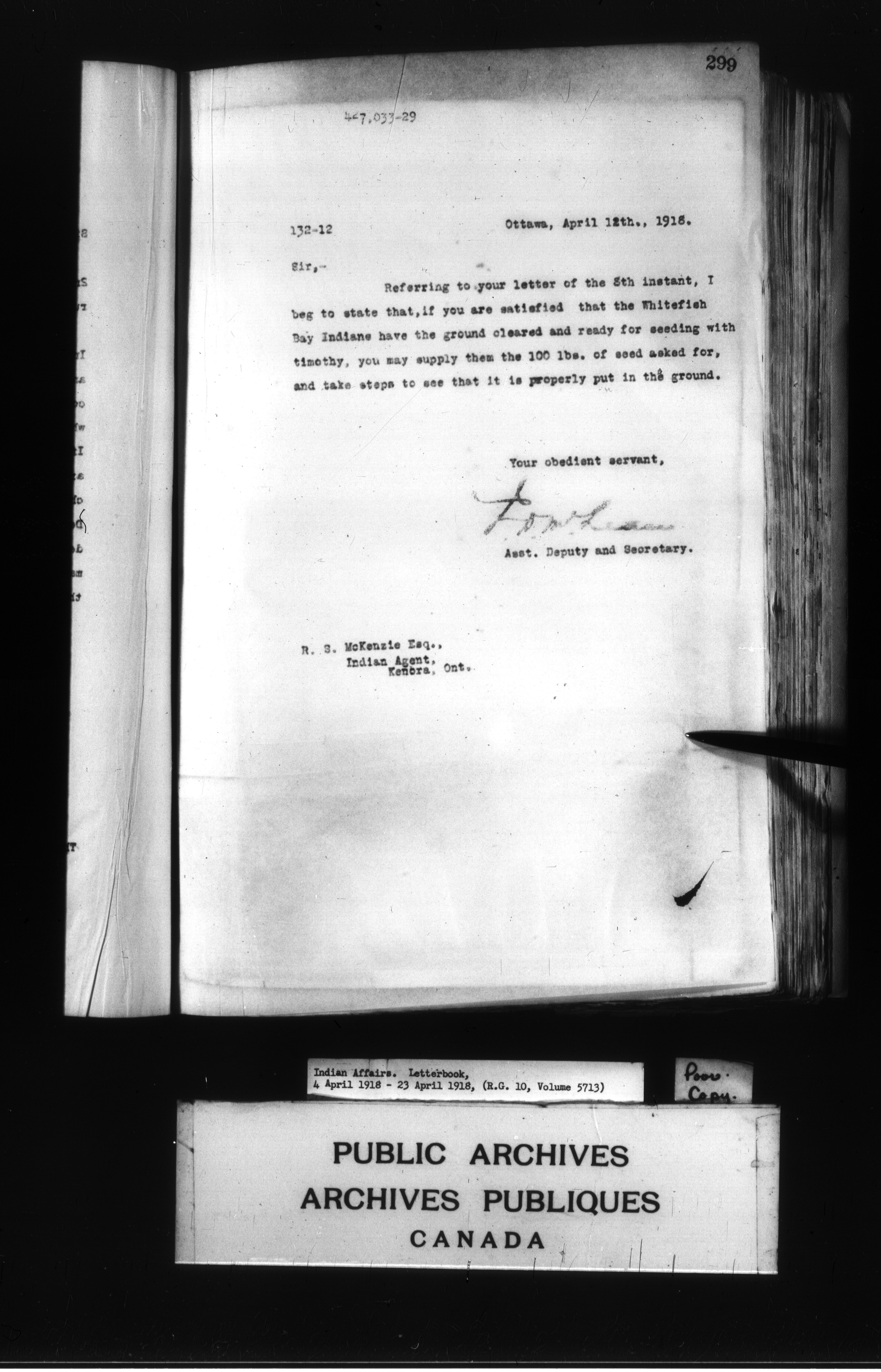 Department of Indian Affairs : Letterbooks of out-going correspondence relating to the administration of Indian Affairs in both eastern and western Canada, 1871-1920 - 8954