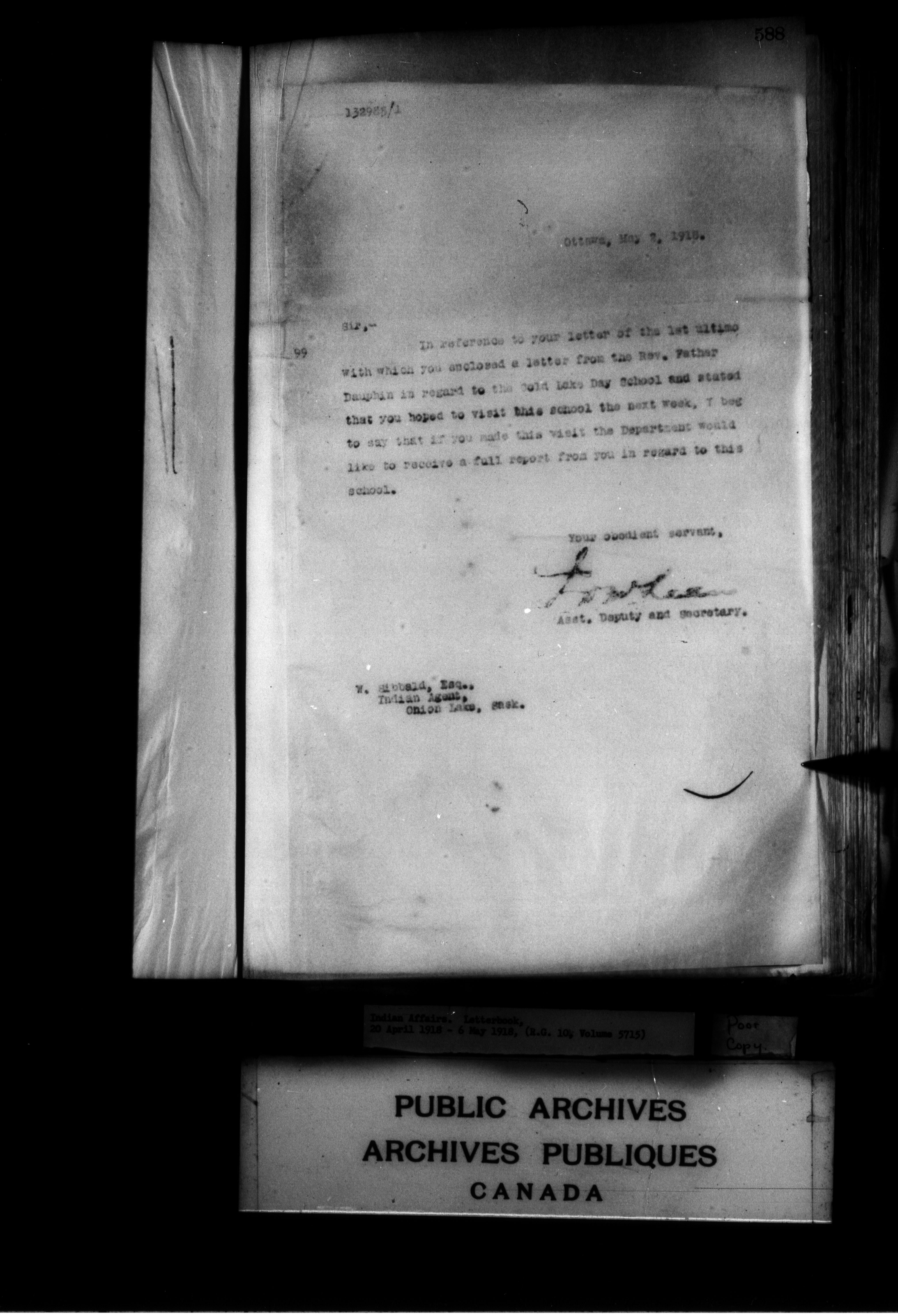 Department of Indian Affairs : Letterbooks of out-going correspondence relating to the administration of Indian Affairs in both eastern and western Canada, 1871-1920 - 8955