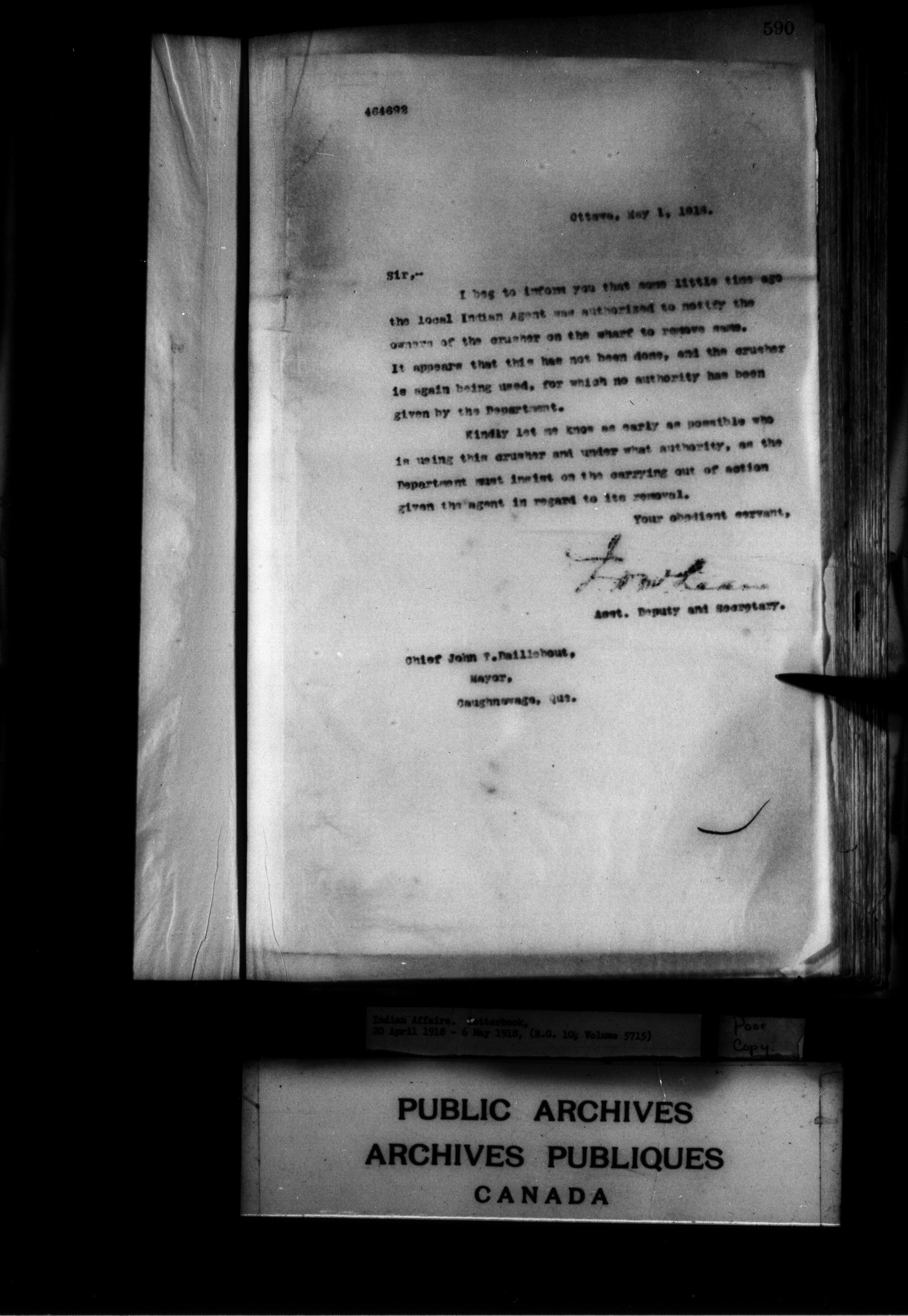 Department of Indian Affairs : Letterbooks of out-going correspondence relating to the administration of Indian Affairs in both eastern and western Canada, 1871-1920 - 8955