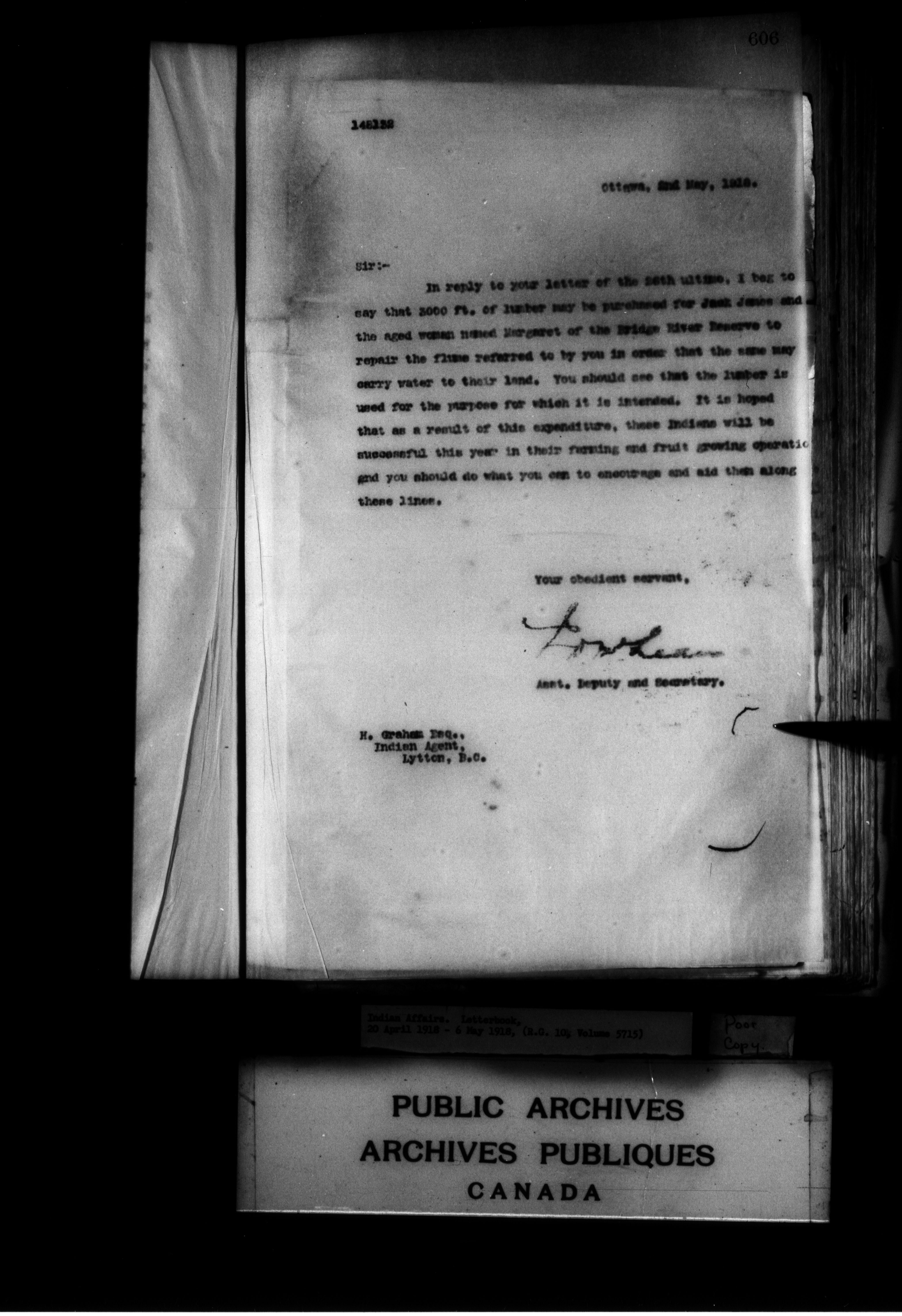 Department of Indian Affairs : Letterbooks of out-going correspondence relating to the administration of Indian Affairs in both eastern and western Canada, 1871-1920 - 8955