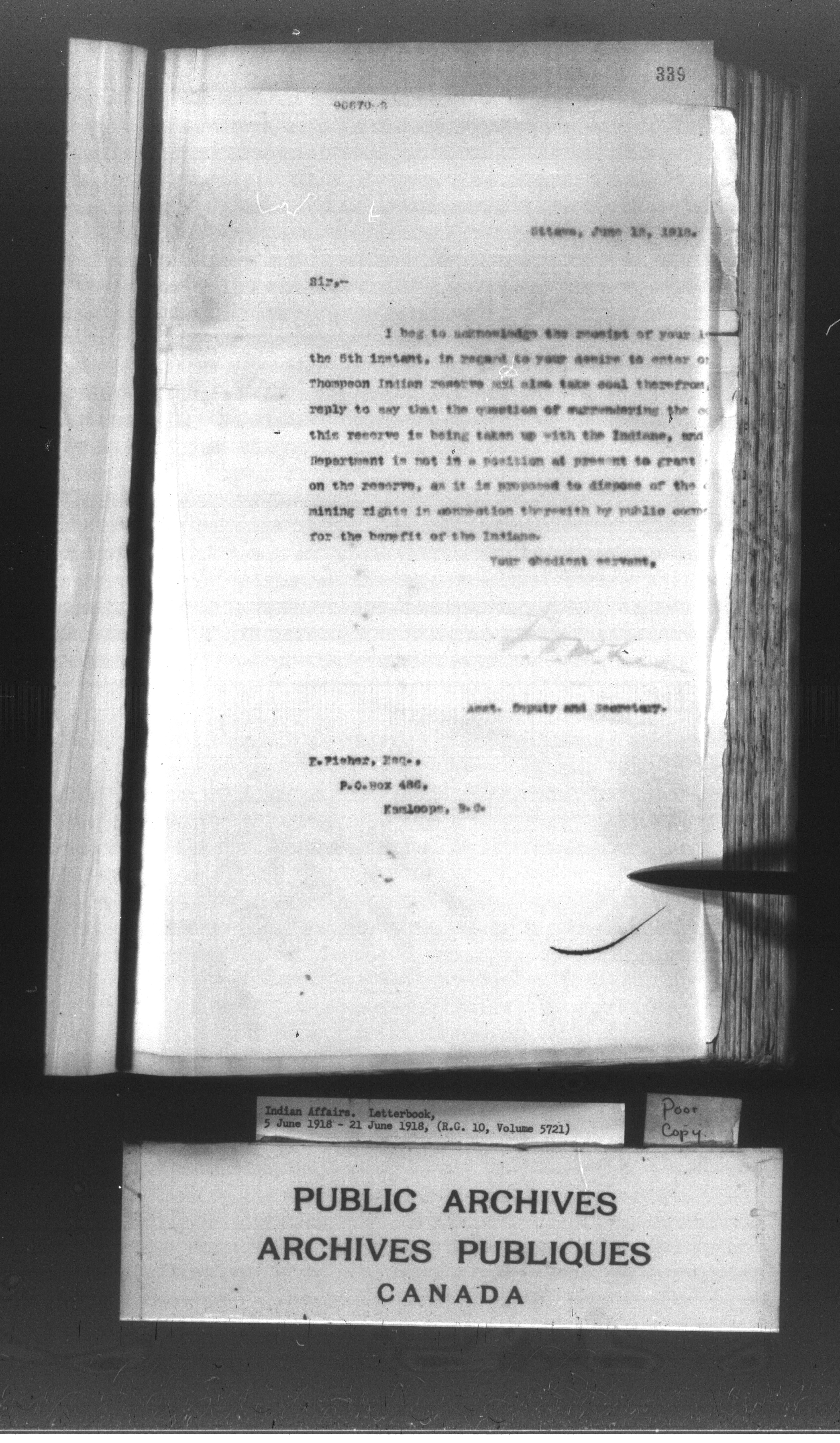 Department of Indian Affairs : Letterbooks of out-going correspondence relating to the administration of Indian Affairs in both eastern and western Canada, 1871-1920 - 8957