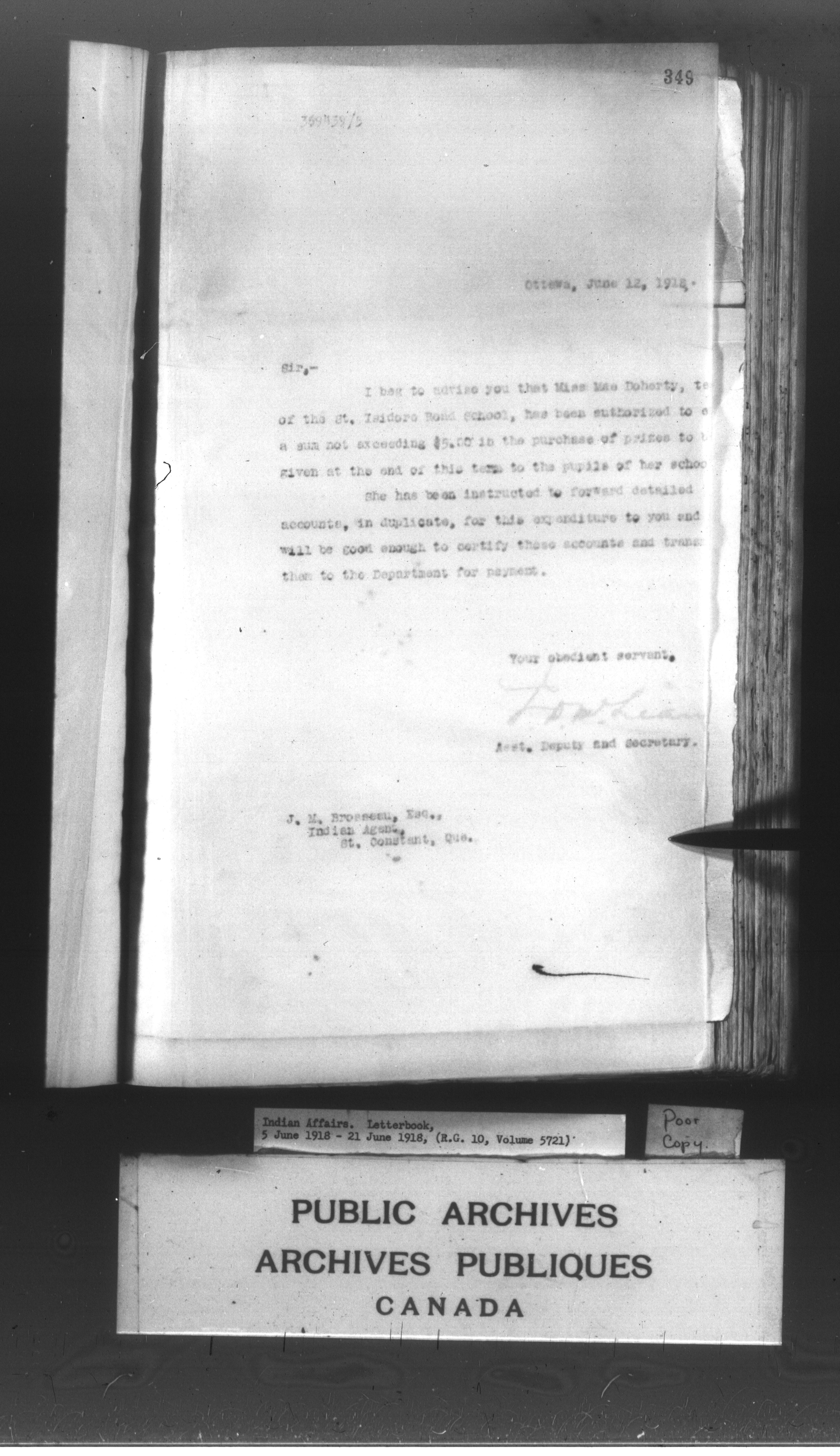 Department of Indian Affairs : Letterbooks of out-going correspondence relating to the administration of Indian Affairs in both eastern and western Canada, 1871-1920 - 8957