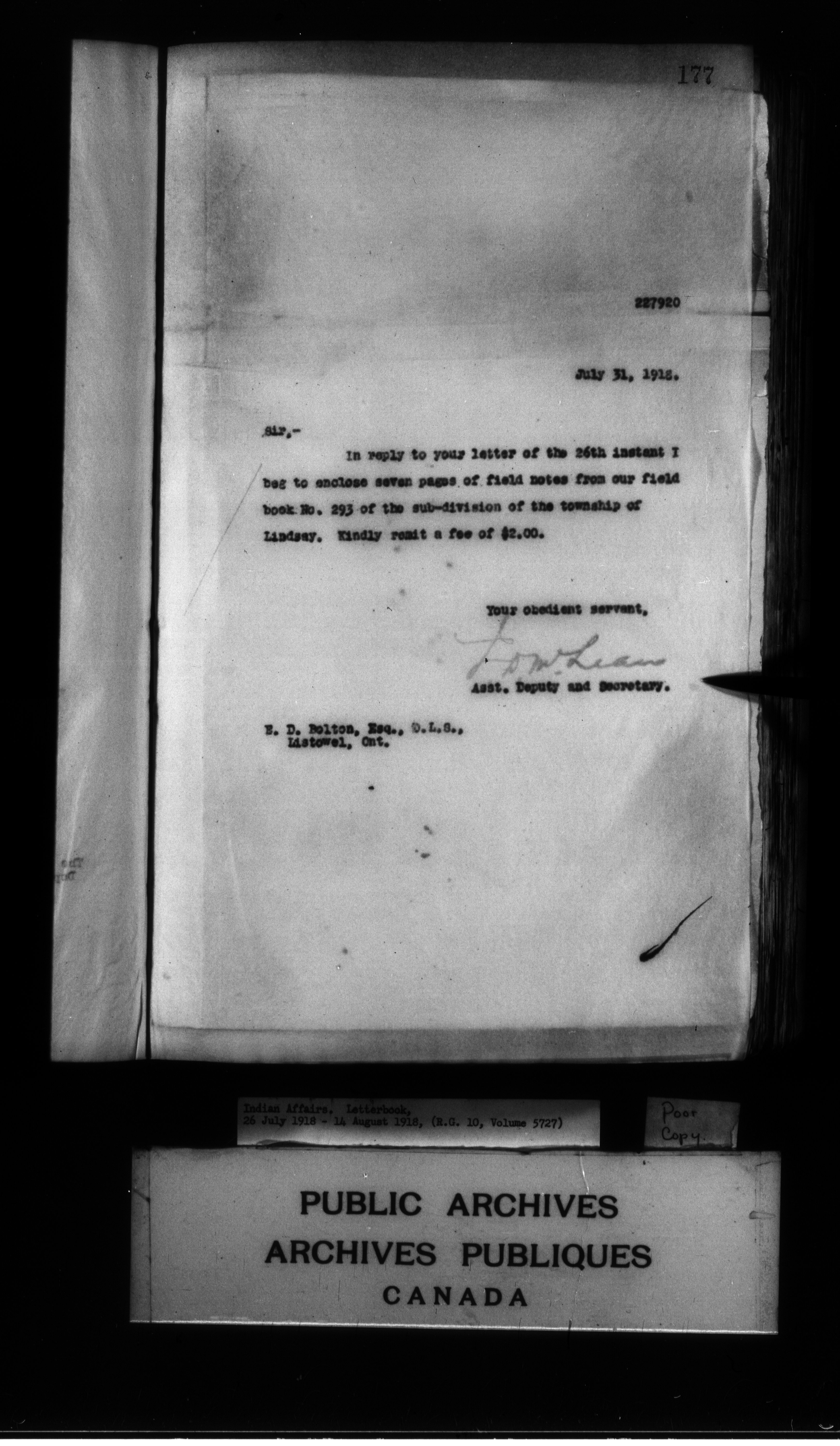 Department of Indian Affairs : Letterbooks of out-going correspondence relating to the administration of Indian Affairs in both eastern and western Canada, 1871-1920 - 8959