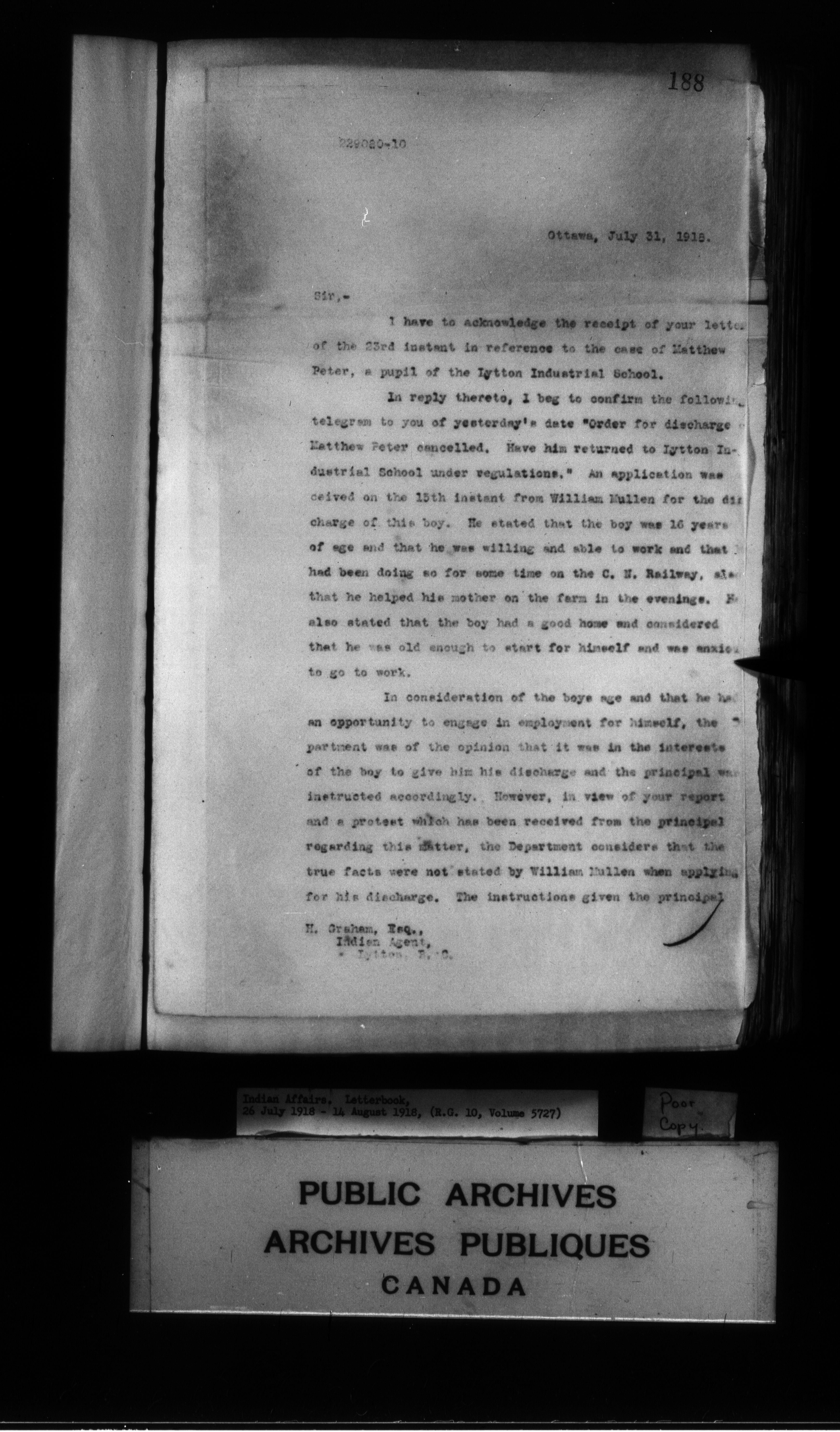 Department of Indian Affairs : Letterbooks of out-going correspondence relating to the administration of Indian Affairs in both eastern and western Canada, 1871-1920 - 8959