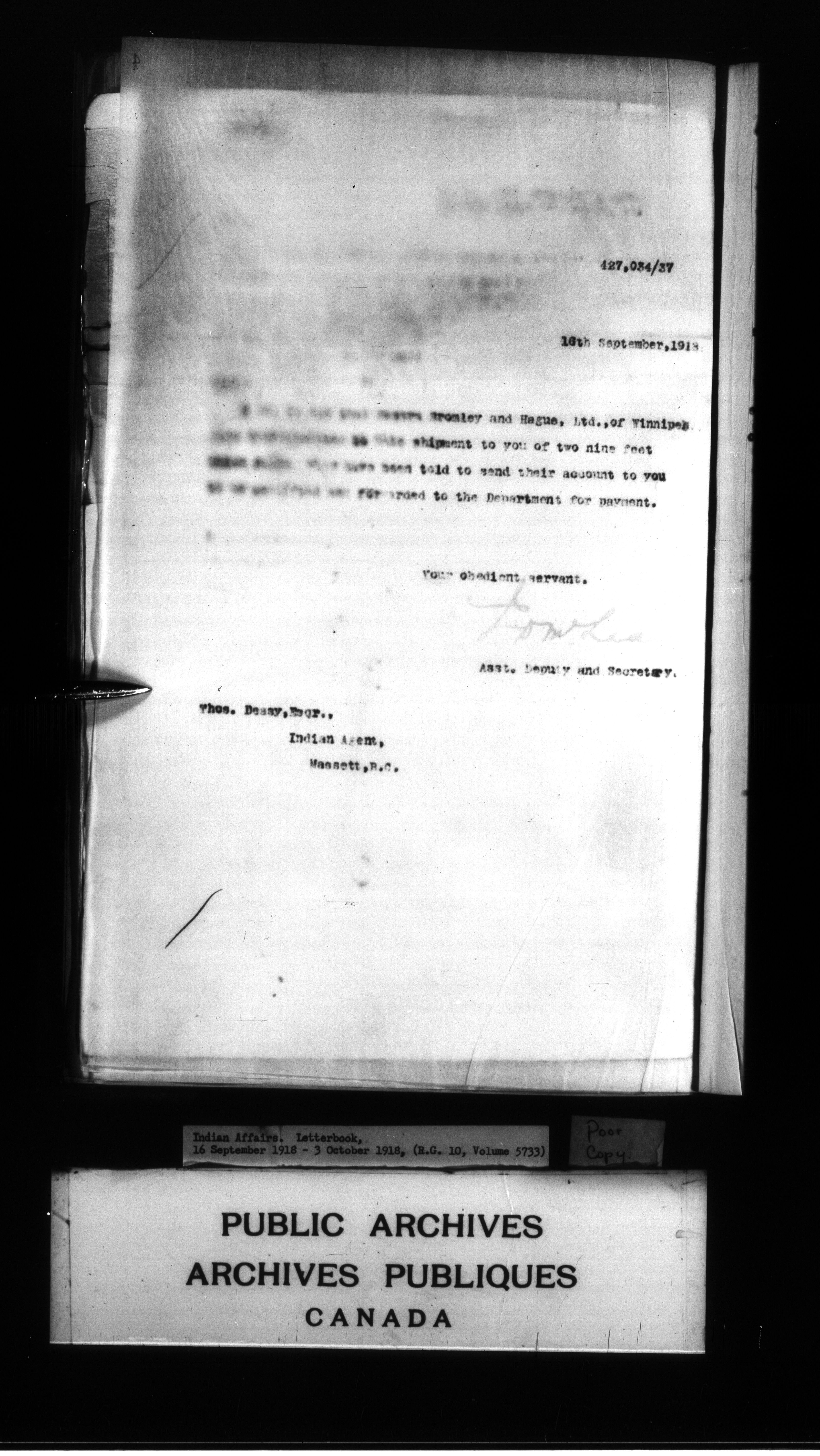Department of Indian Affairs : Letterbooks of out-going correspondence relating to the administration of Indian Affairs in both eastern and western Canada, 1871-1920 - 8961