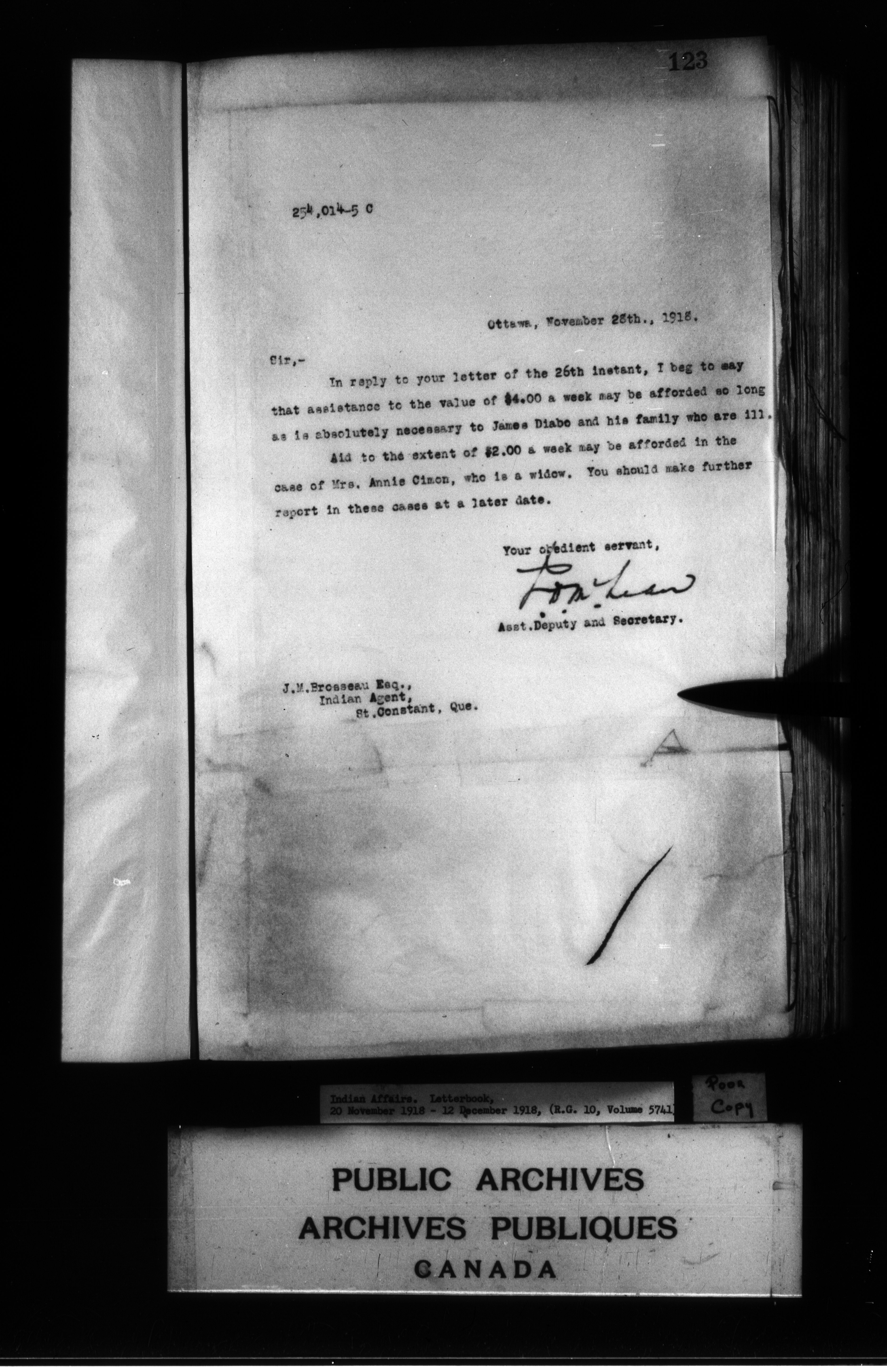 Department of Indian Affairs : Letterbooks of out-going correspondence relating to the administration of Indian Affairs in both eastern and western Canada, 1871-1920 - 8963