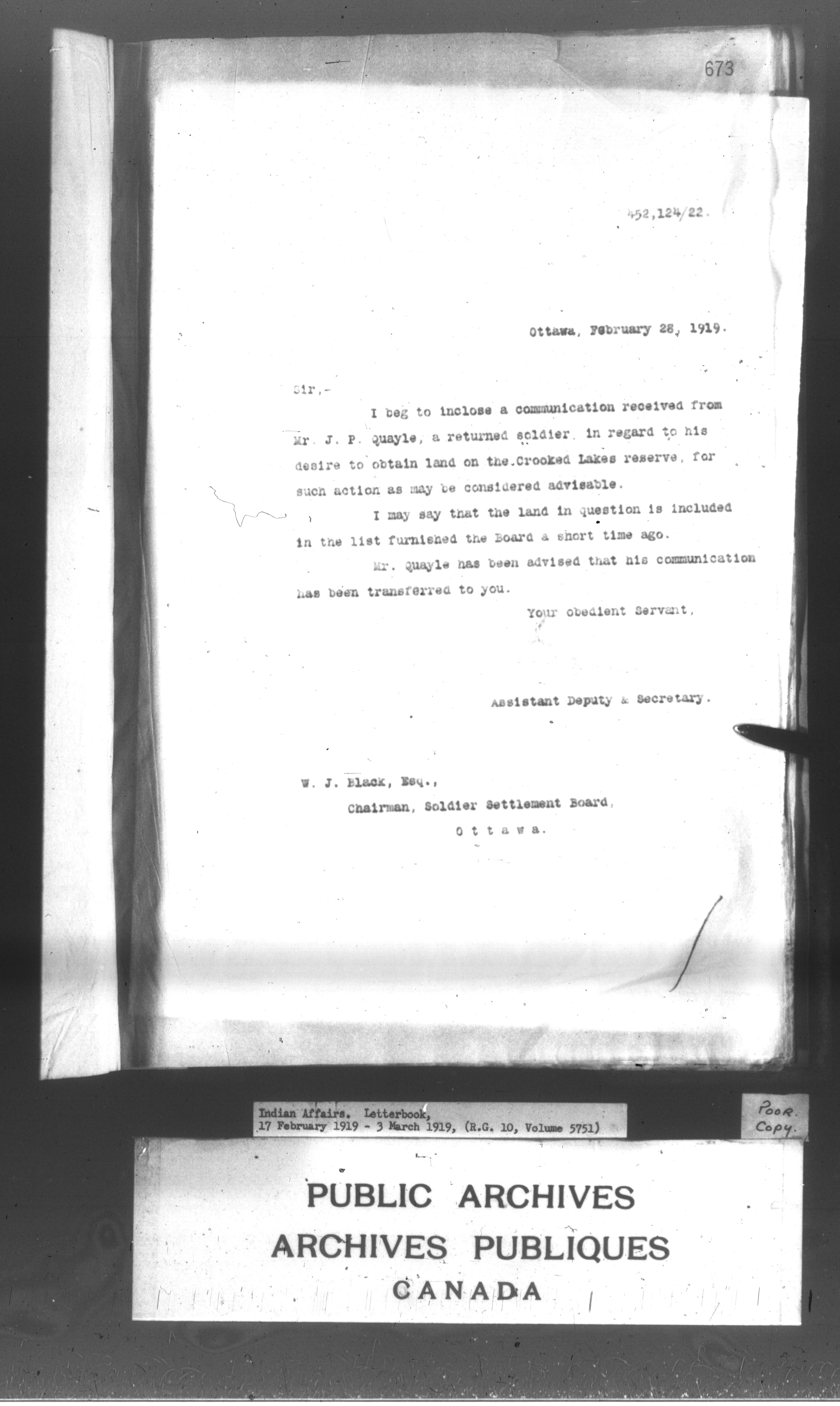Department of Indian Affairs : Letterbooks of out-going correspondence relating to the administration of Indian Affairs in both eastern and western Canada, 1871-1920 - 8967