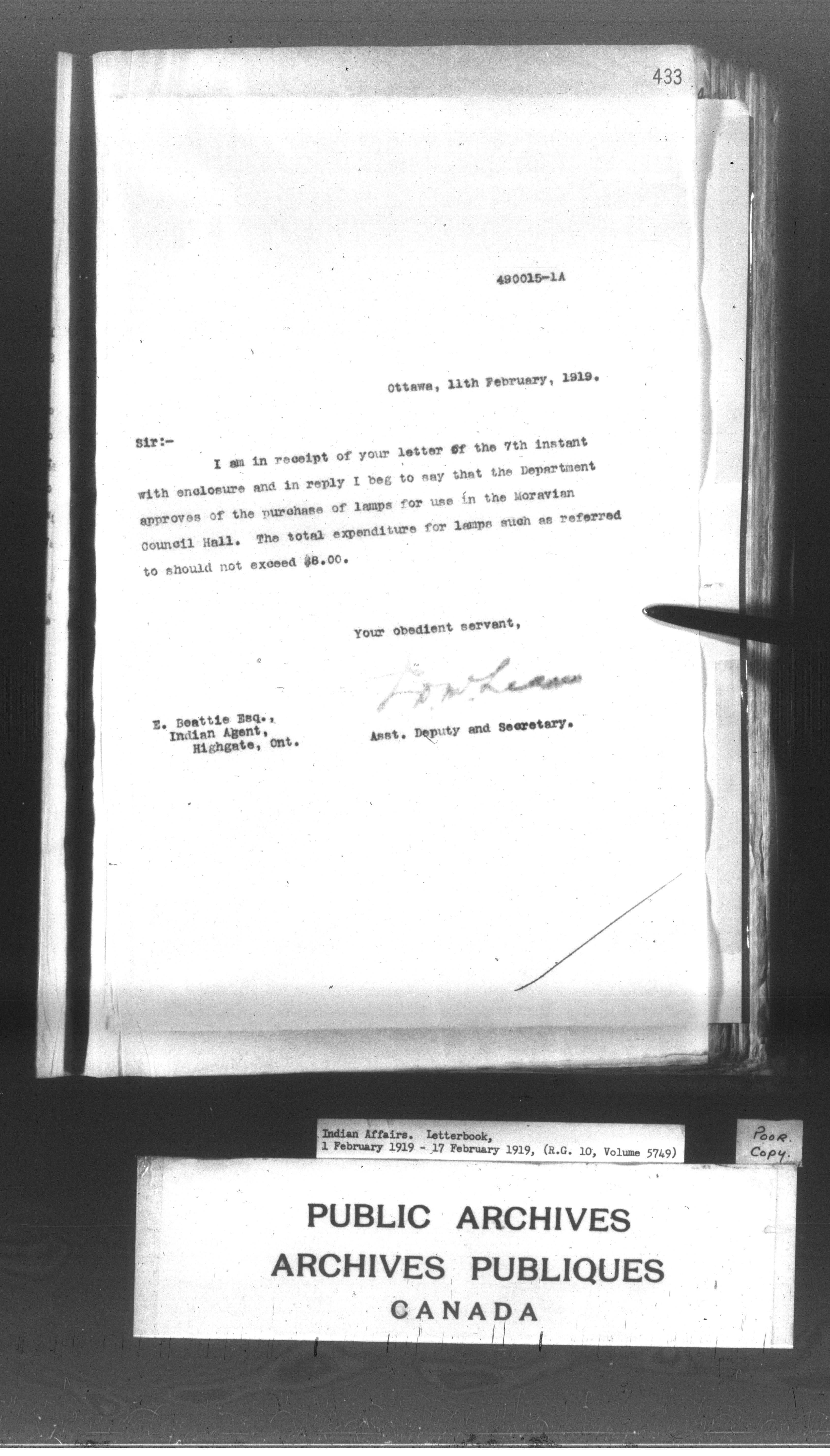 Department of Indian Affairs : Letterbooks of out-going correspondence relating to the administration of Indian Affairs in both eastern and western Canada, 1871-1920 - 8967