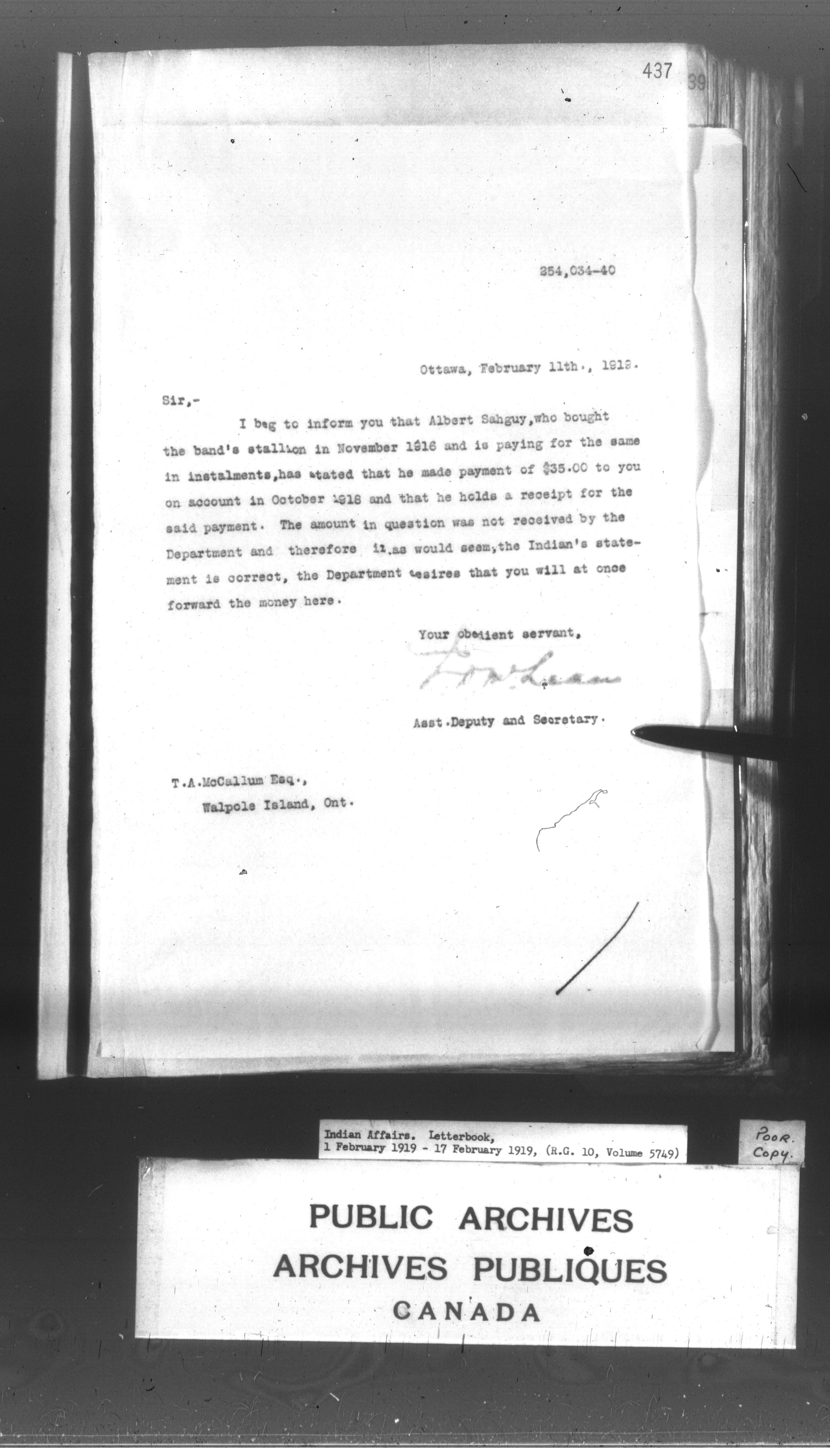 Department of Indian Affairs : Letterbooks of out-going correspondence relating to the administration of Indian Affairs in both eastern and western Canada, 1871-1920 - 8967