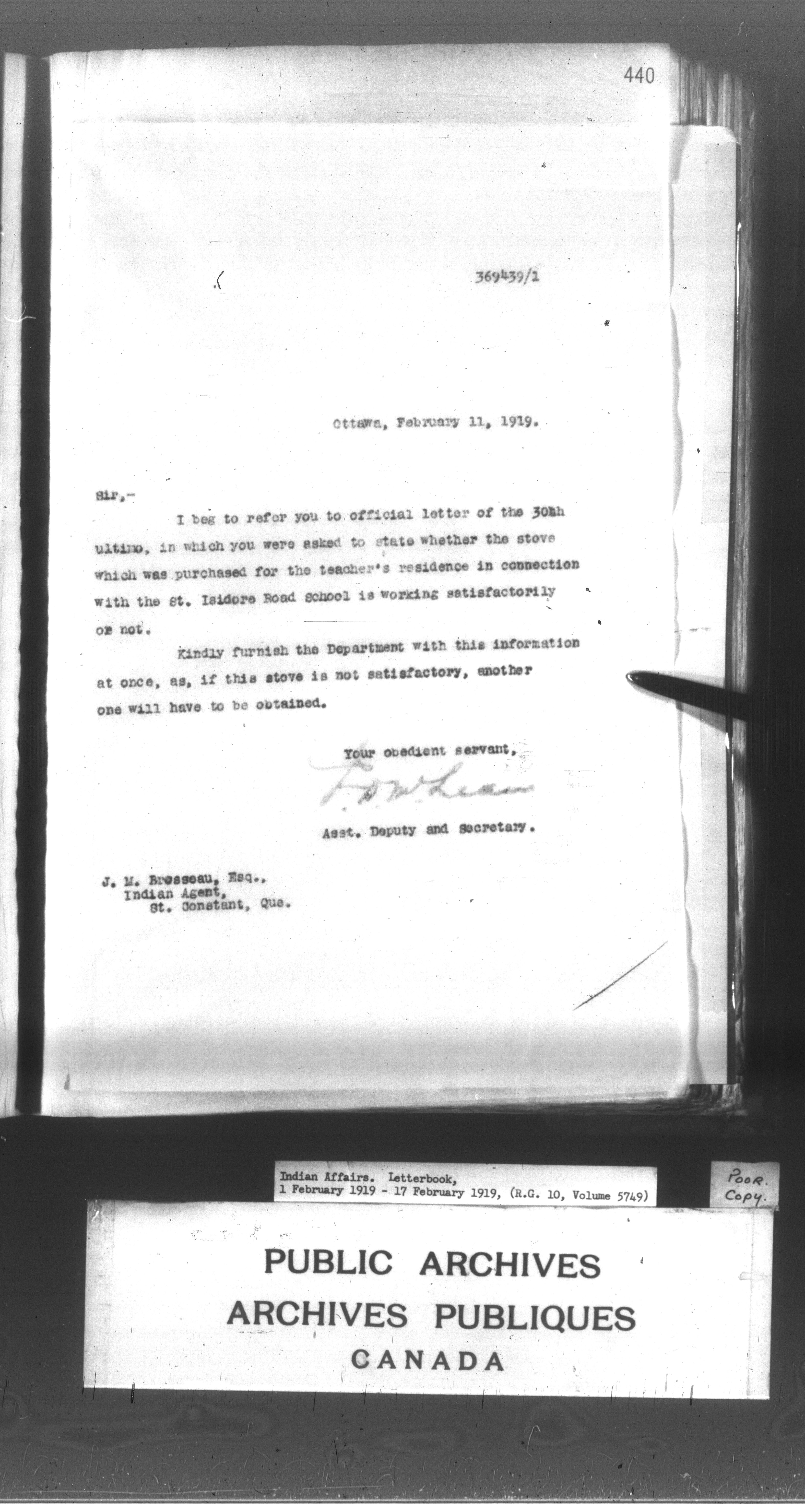 Department of Indian Affairs : Letterbooks of out-going correspondence relating to the administration of Indian Affairs in both eastern and western Canada, 1871-1920 - 8967