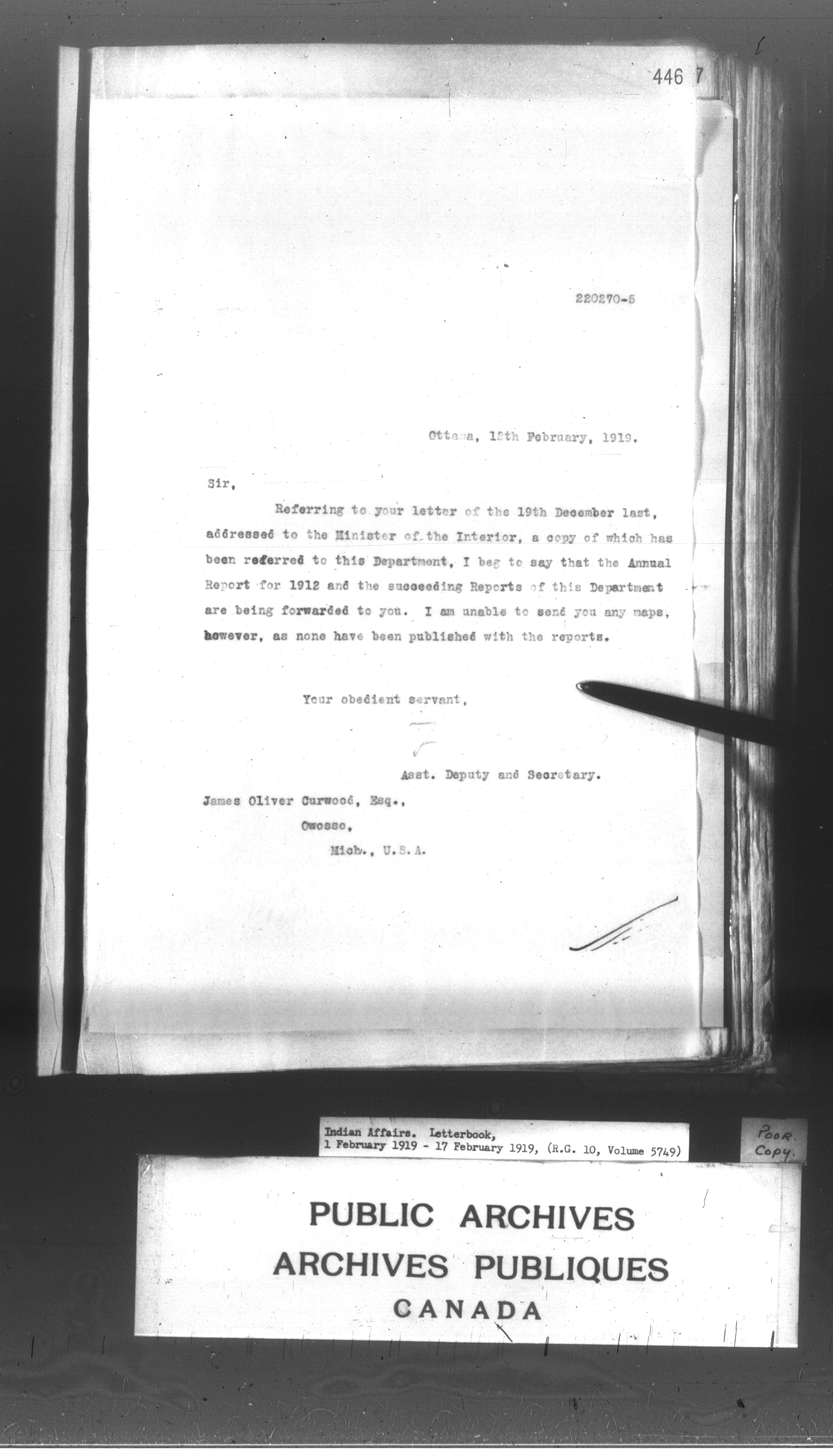 Department of Indian Affairs : Letterbooks of out-going correspondence relating to the administration of Indian Affairs in both eastern and western Canada, 1871-1920 - 8967