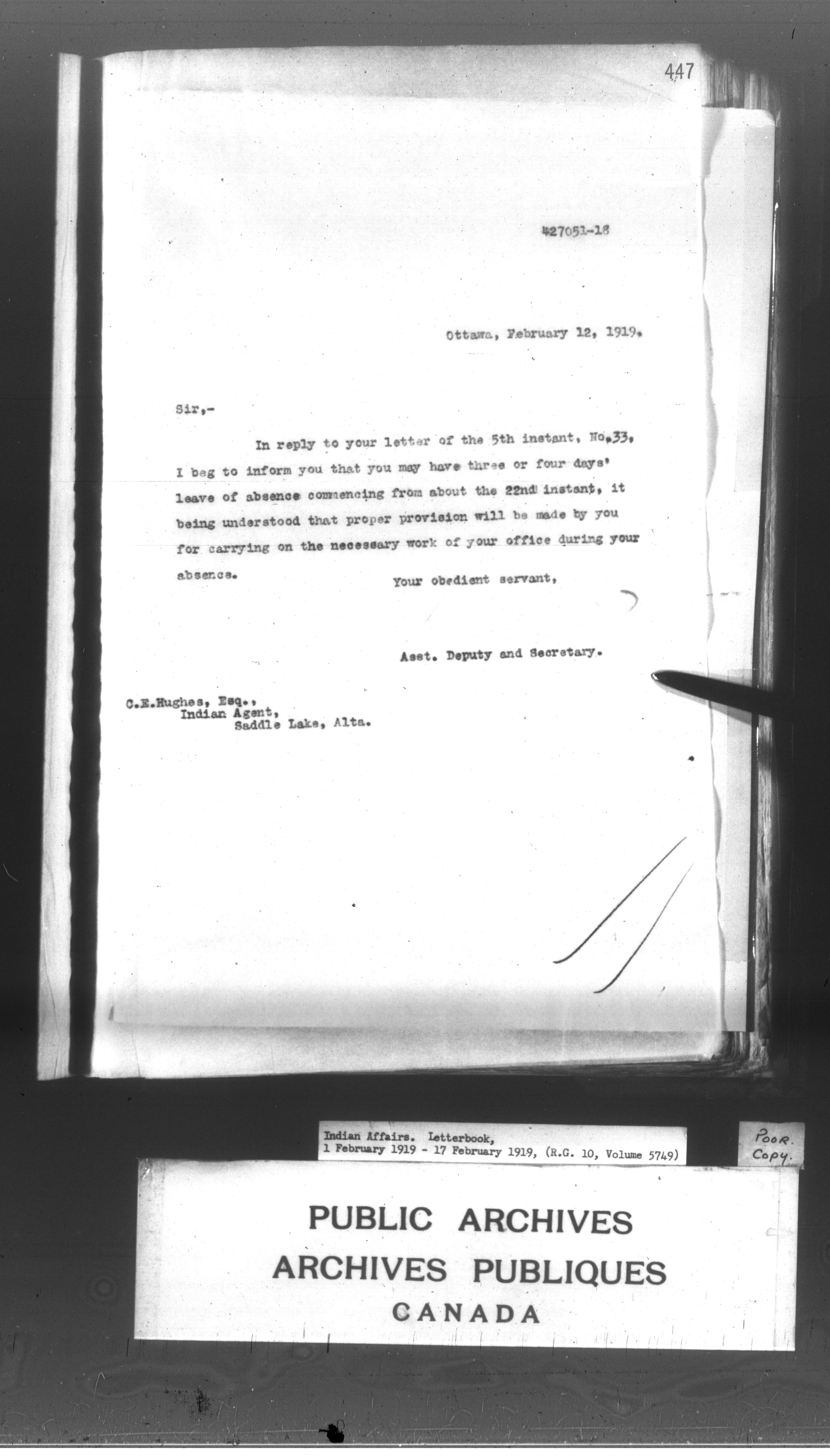 Department of Indian Affairs : Letterbooks of out-going correspondence relating to the administration of Indian Affairs in both eastern and western Canada, 1871-1920 - 8967