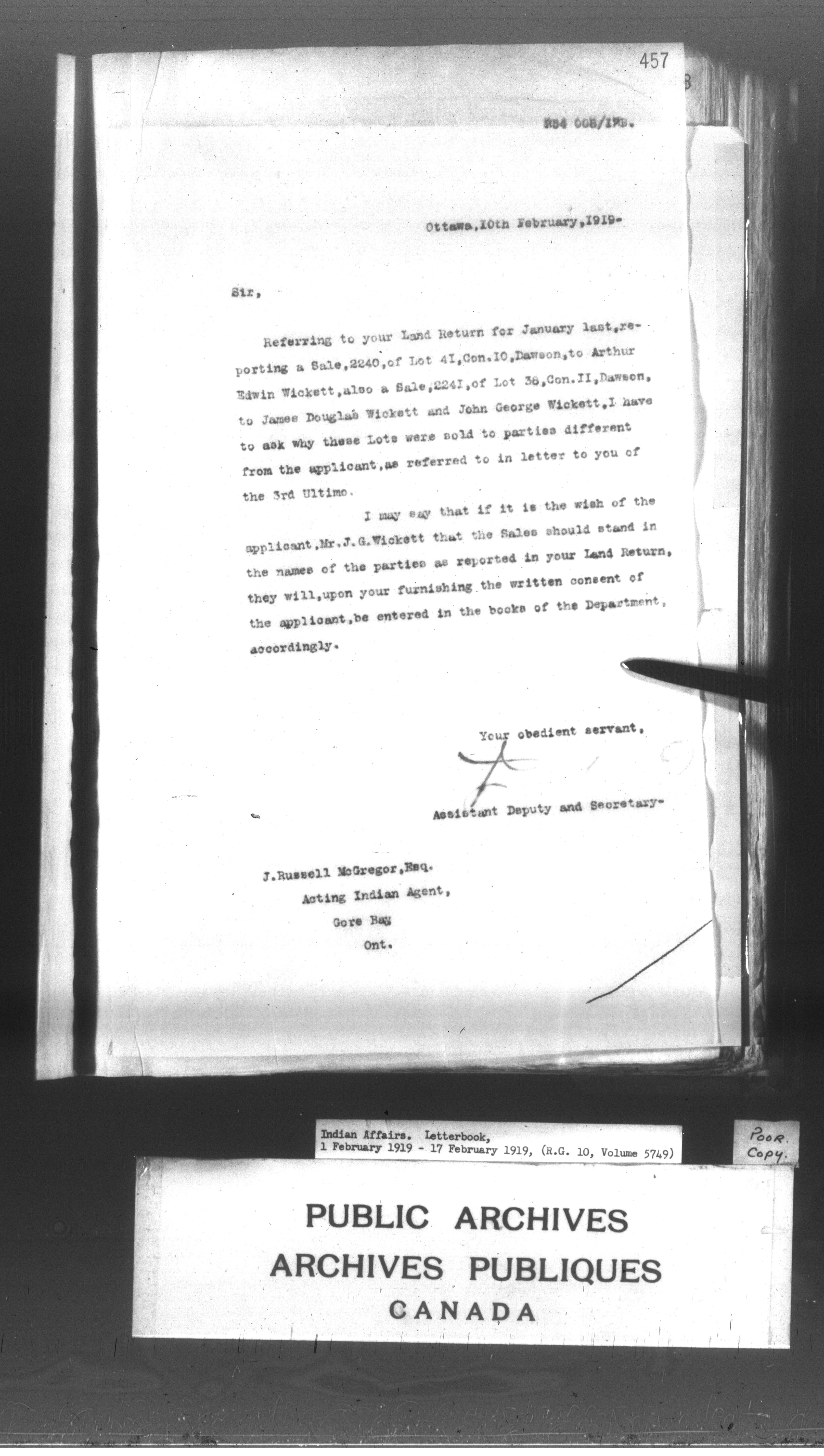 Department of Indian Affairs : Letterbooks of out-going correspondence relating to the administration of Indian Affairs in both eastern and western Canada, 1871-1920 - 8967