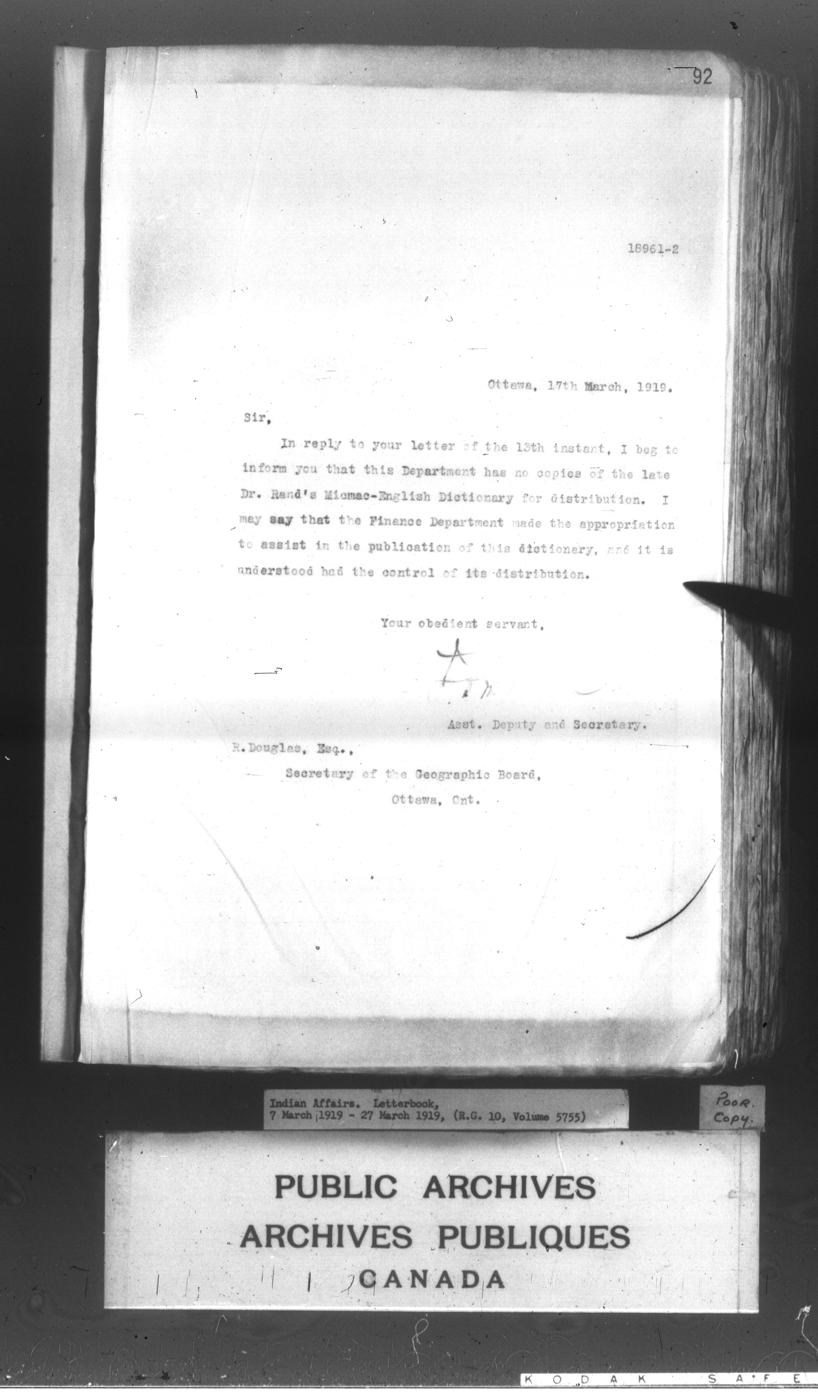 Department of Indian Affairs : Letterbooks of out-going correspondence relating to the administration of Indian Affairs in both eastern and western Canada, 1871-1920 - 8968
