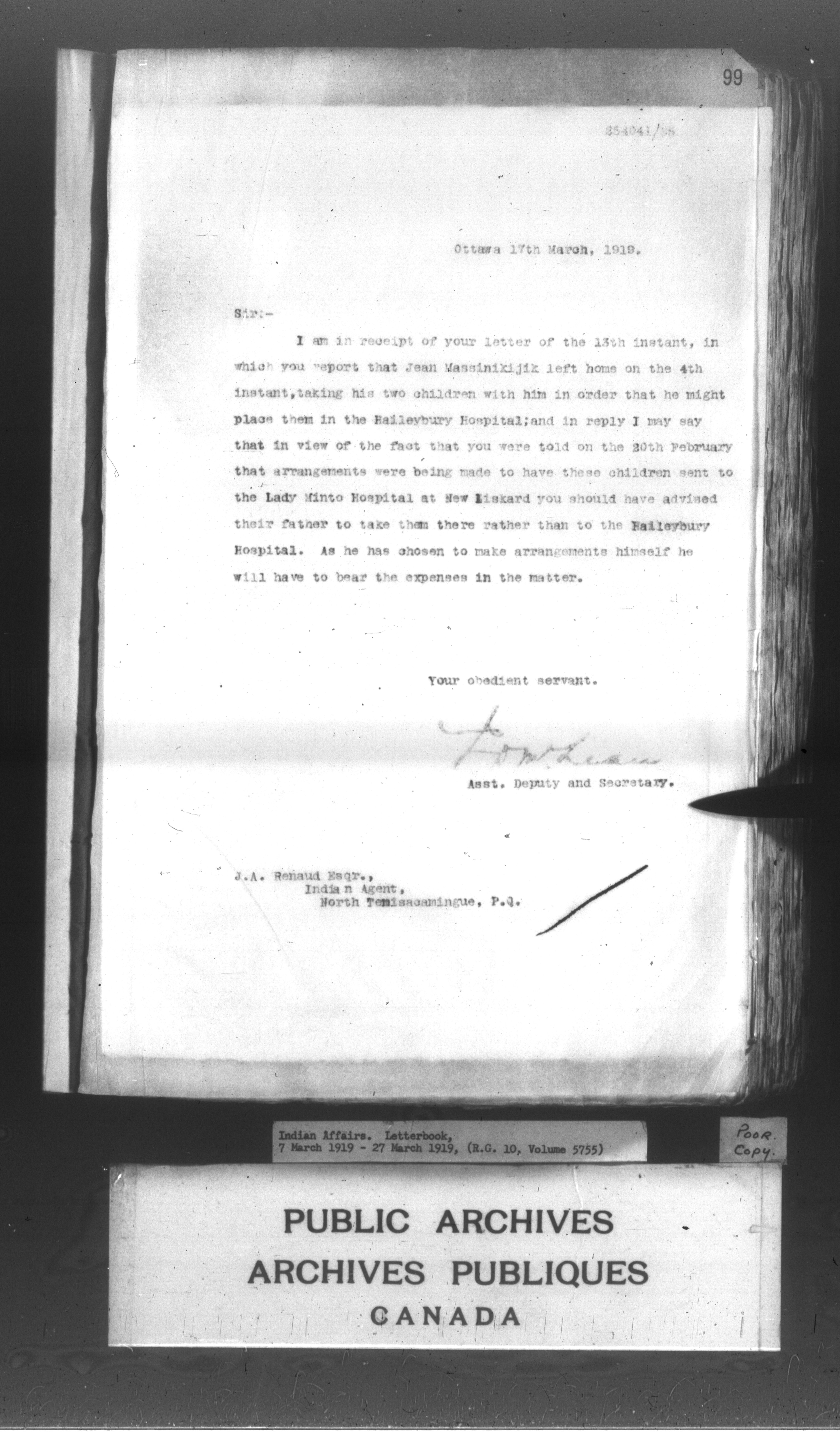 Department of Indian Affairs : Letterbooks of out-going correspondence relating to the administration of Indian Affairs in both eastern and western Canada, 1871-1920 - 8968