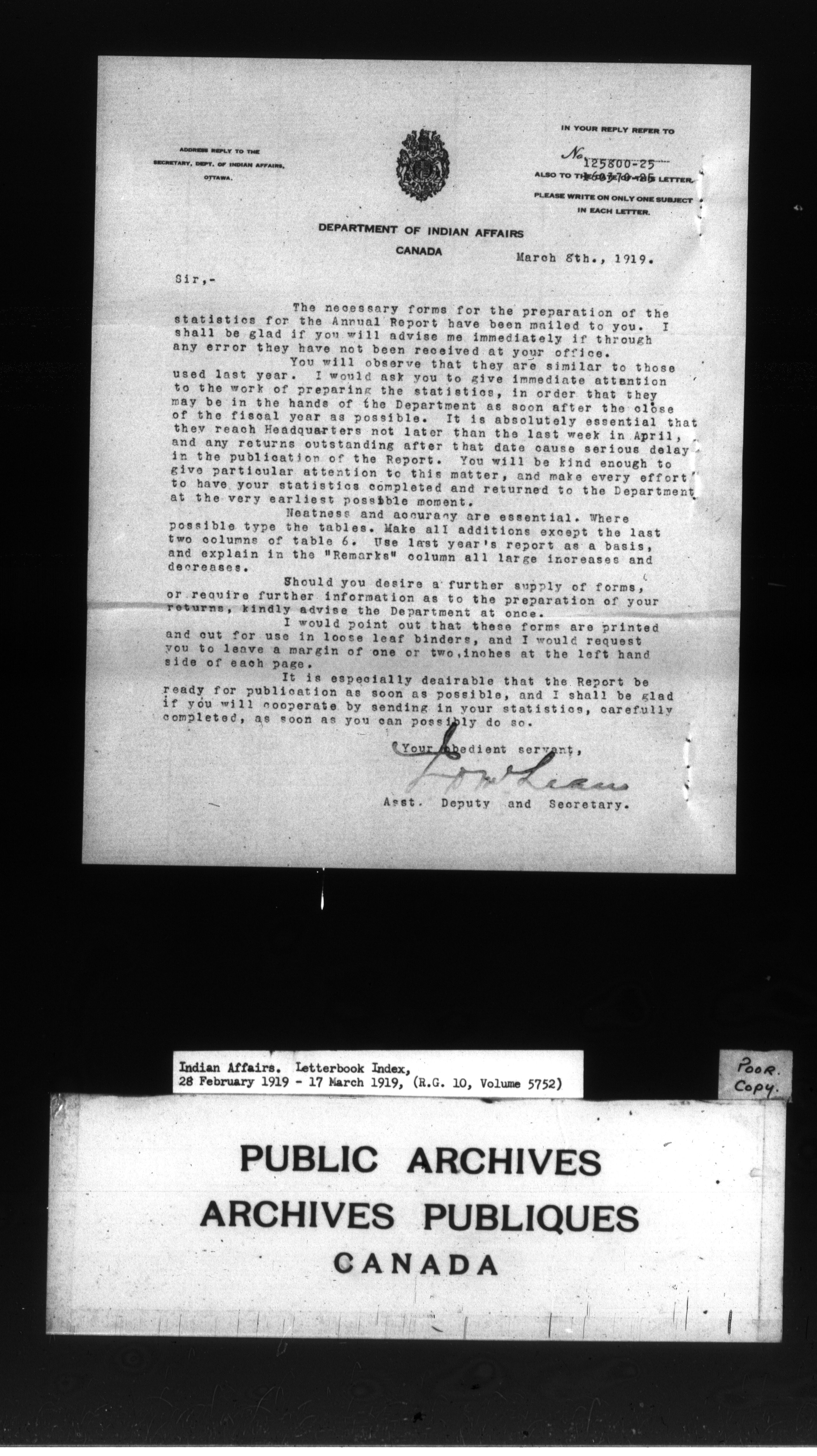 Department of Indian Affairs : Letterbooks of out-going correspondence relating to the administration of Indian Affairs in both eastern and western Canada, 1871-1920 - 8968