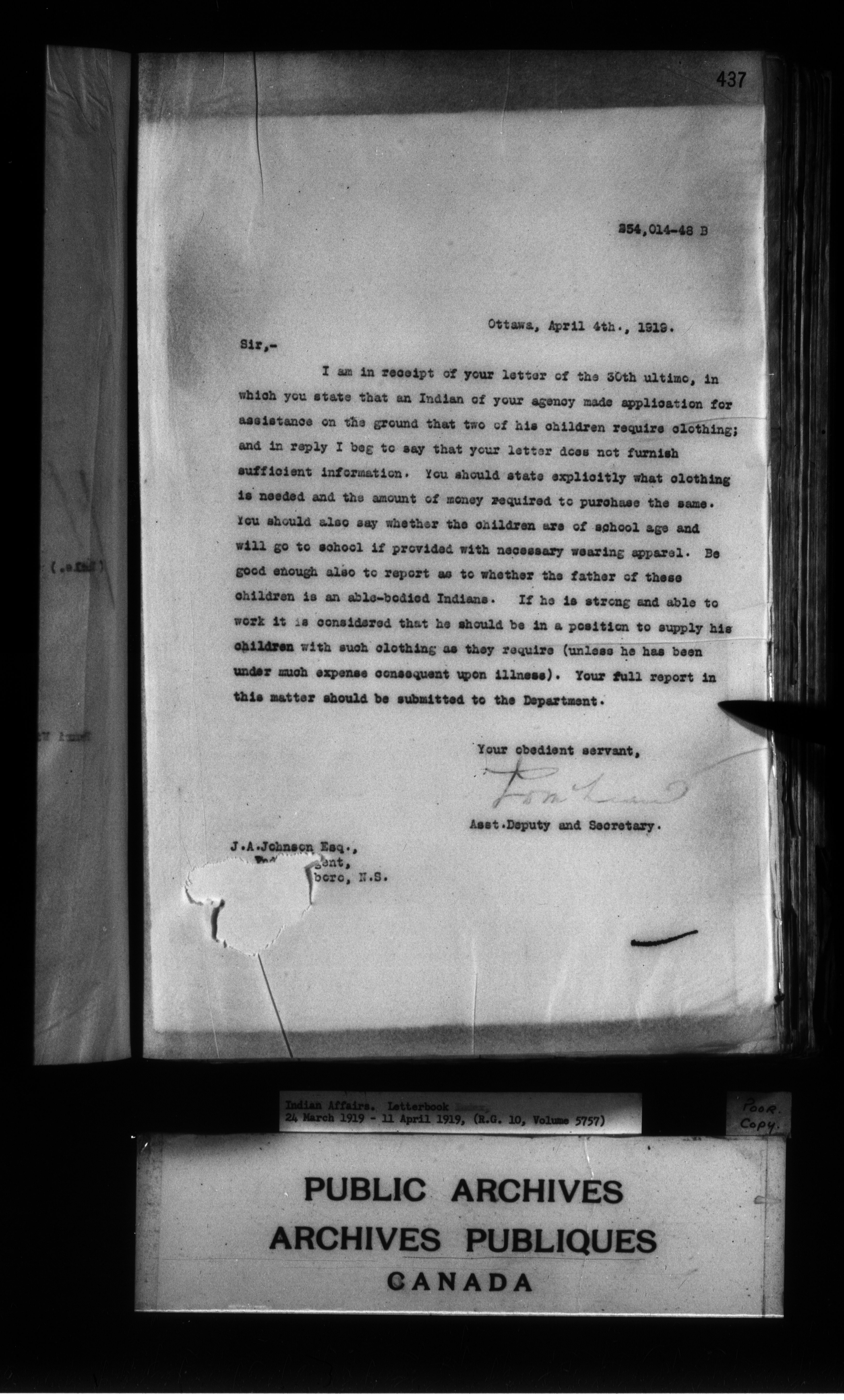 Department of Indian Affairs : Letterbooks of out-going correspondence relating to the administration of Indian Affairs in both eastern and western Canada, 1871-1920 - 8969