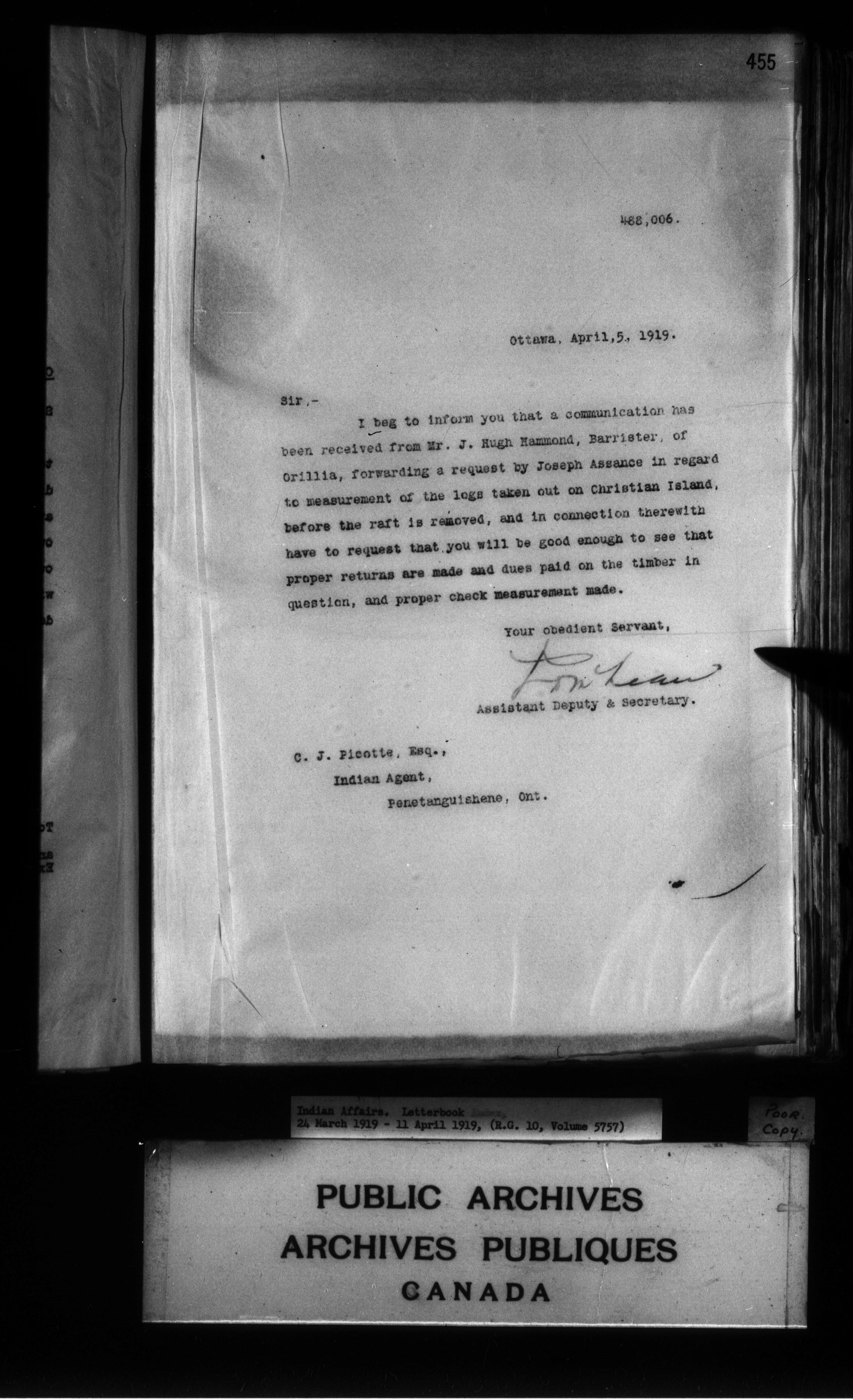 Department of Indian Affairs : Letterbooks of out-going correspondence relating to the administration of Indian Affairs in both eastern and western Canada, 1871-1920 - 8969