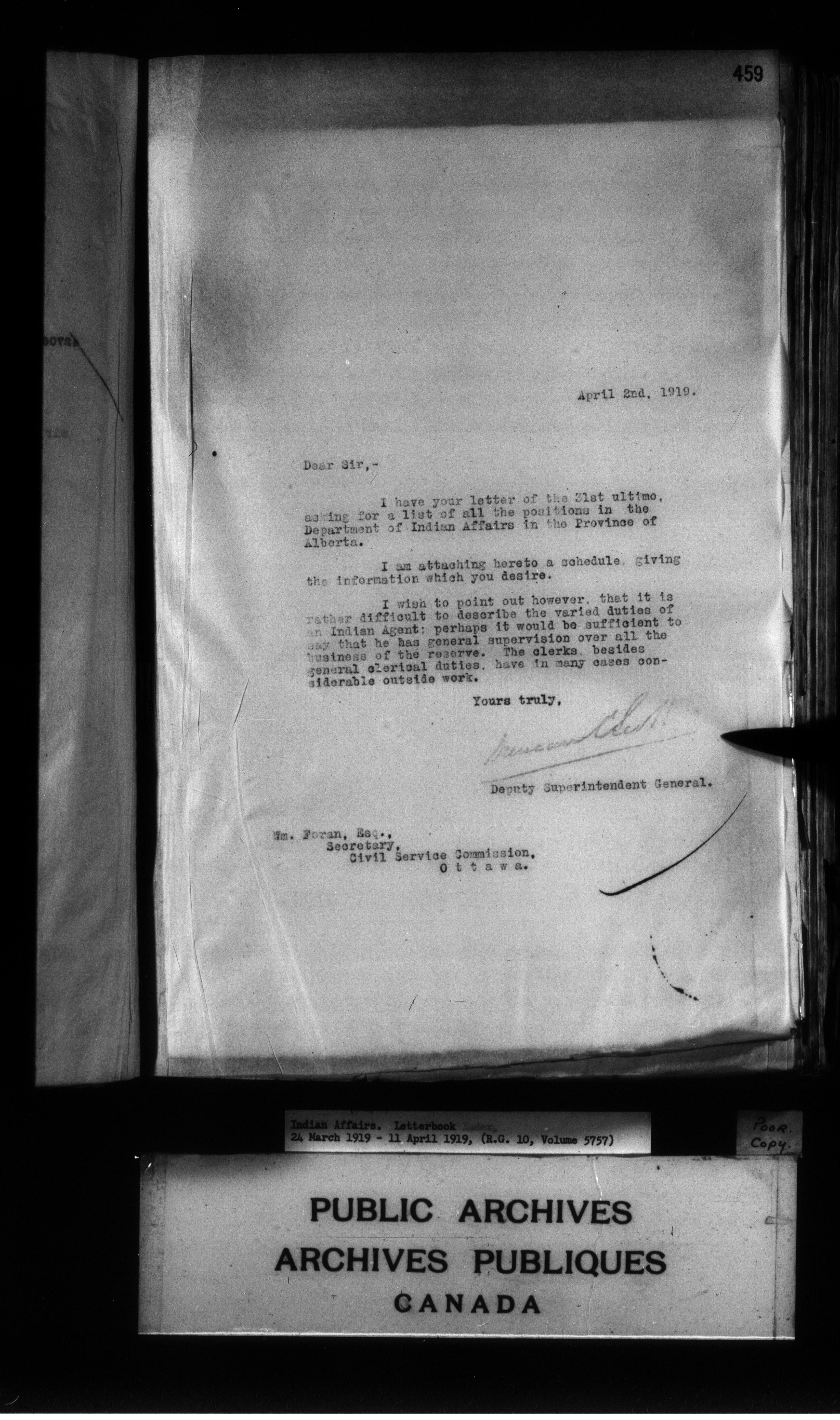 Department of Indian Affairs : Letterbooks of out-going correspondence relating to the administration of Indian Affairs in both eastern and western Canada, 1871-1920 - 8969