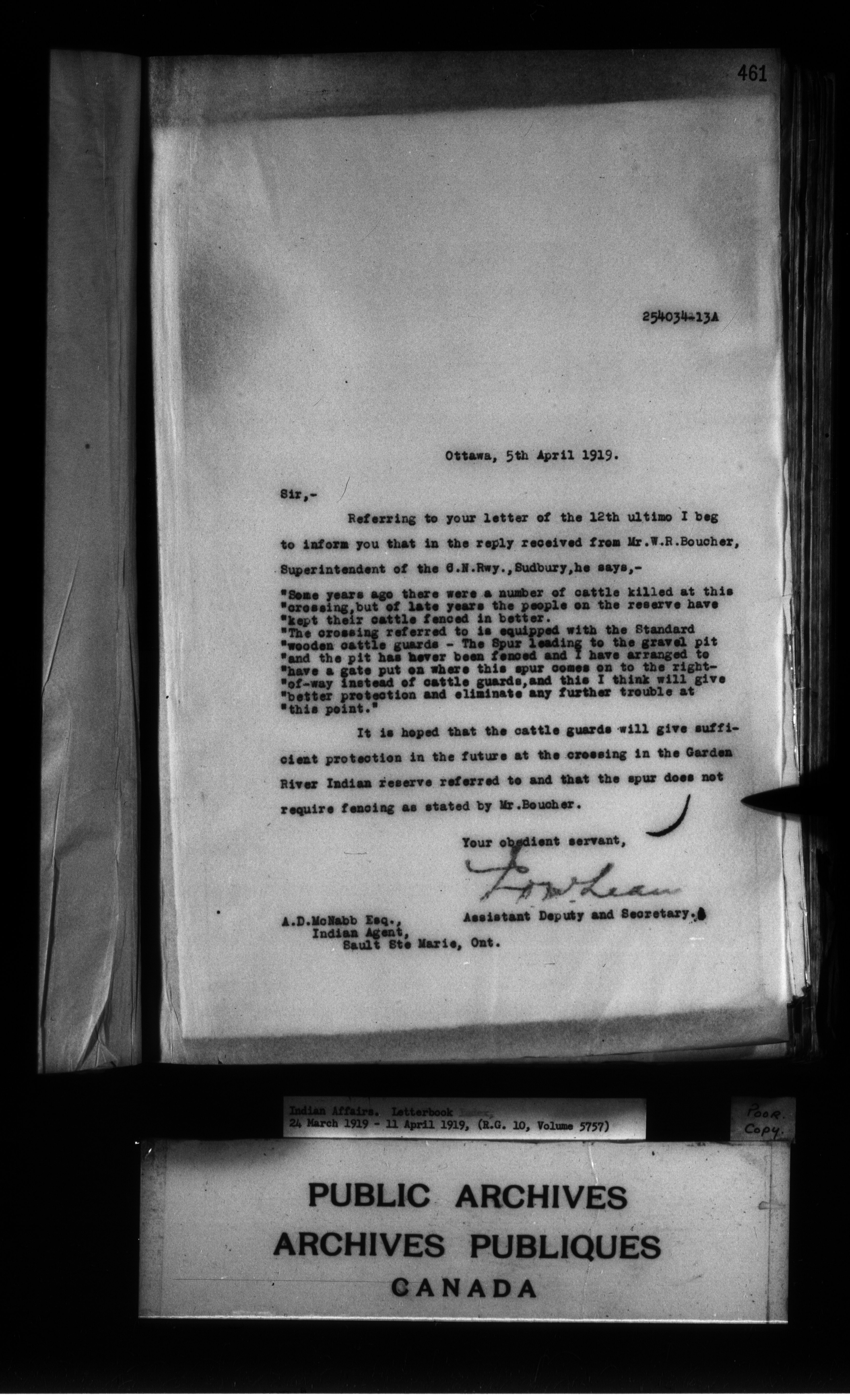 Department of Indian Affairs : Letterbooks of out-going correspondence relating to the administration of Indian Affairs in both eastern and western Canada, 1871-1920 - 8969