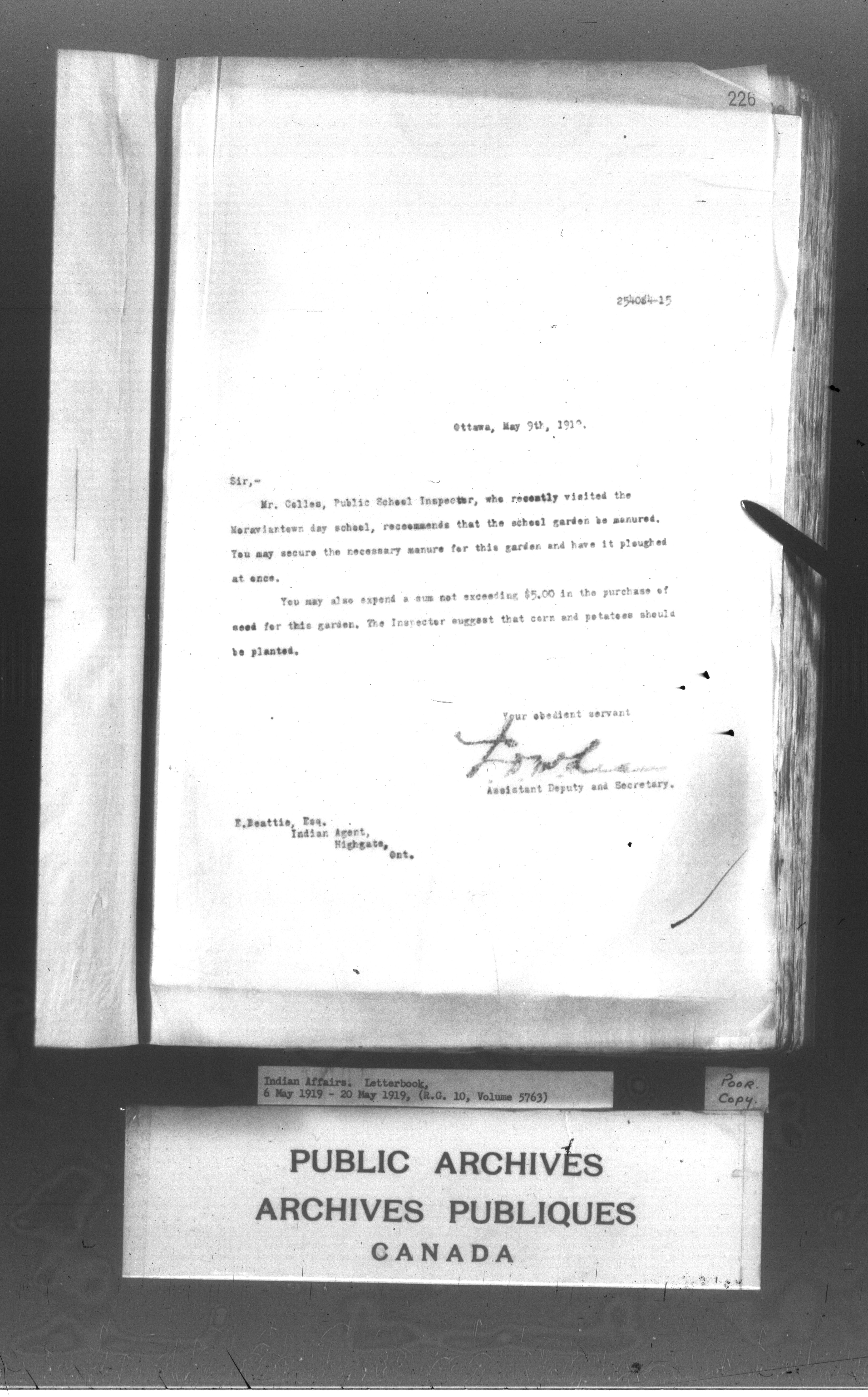 Department of Indian Affairs : Letterbooks of out-going correspondence relating to the administration of Indian Affairs in both eastern and western Canada, 1871-1920 - 8972