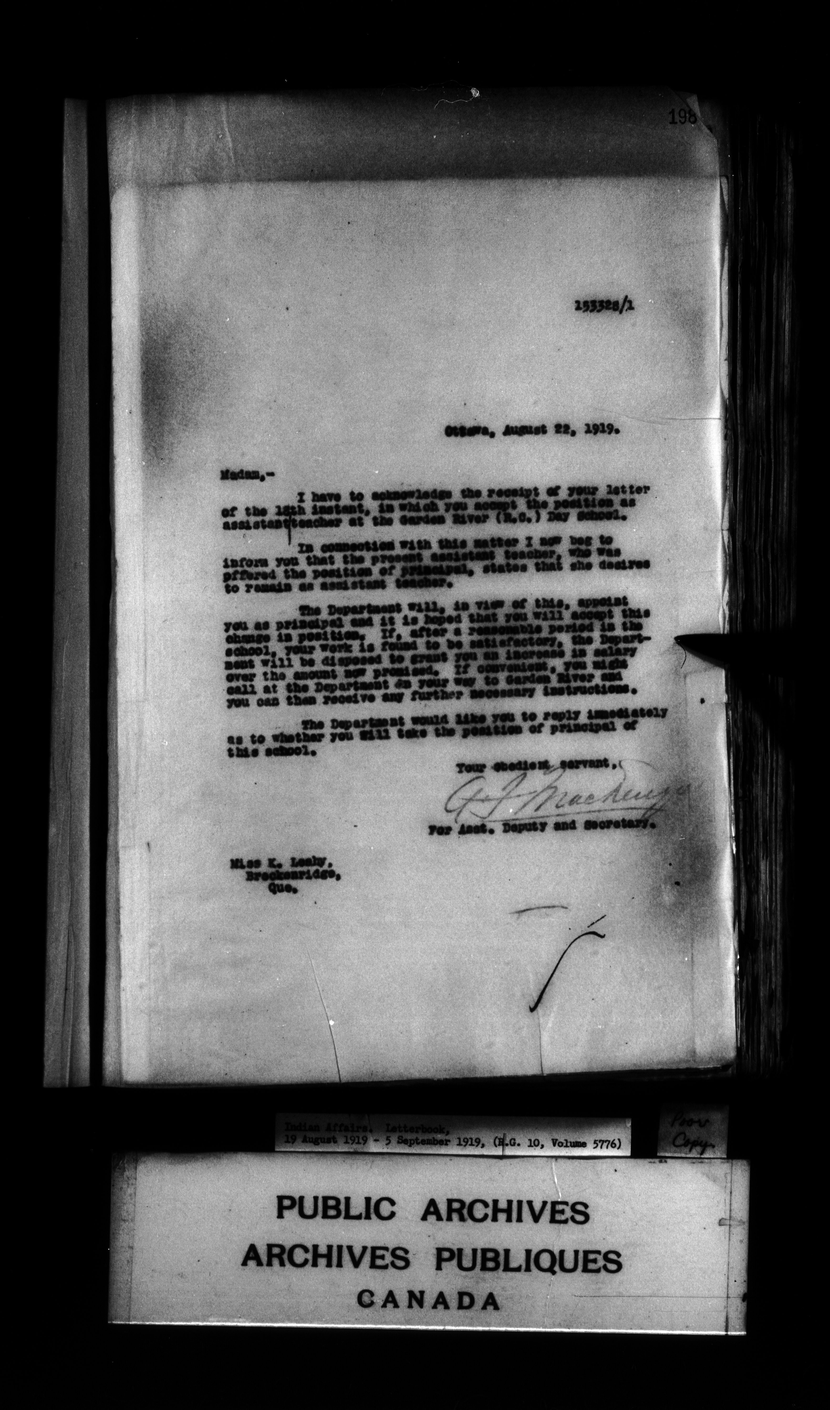 Department of Indian Affairs : Letterbooks of out-going correspondence relating to the administration of Indian Affairs in both eastern and western Canada, 1871-1920 - 8977