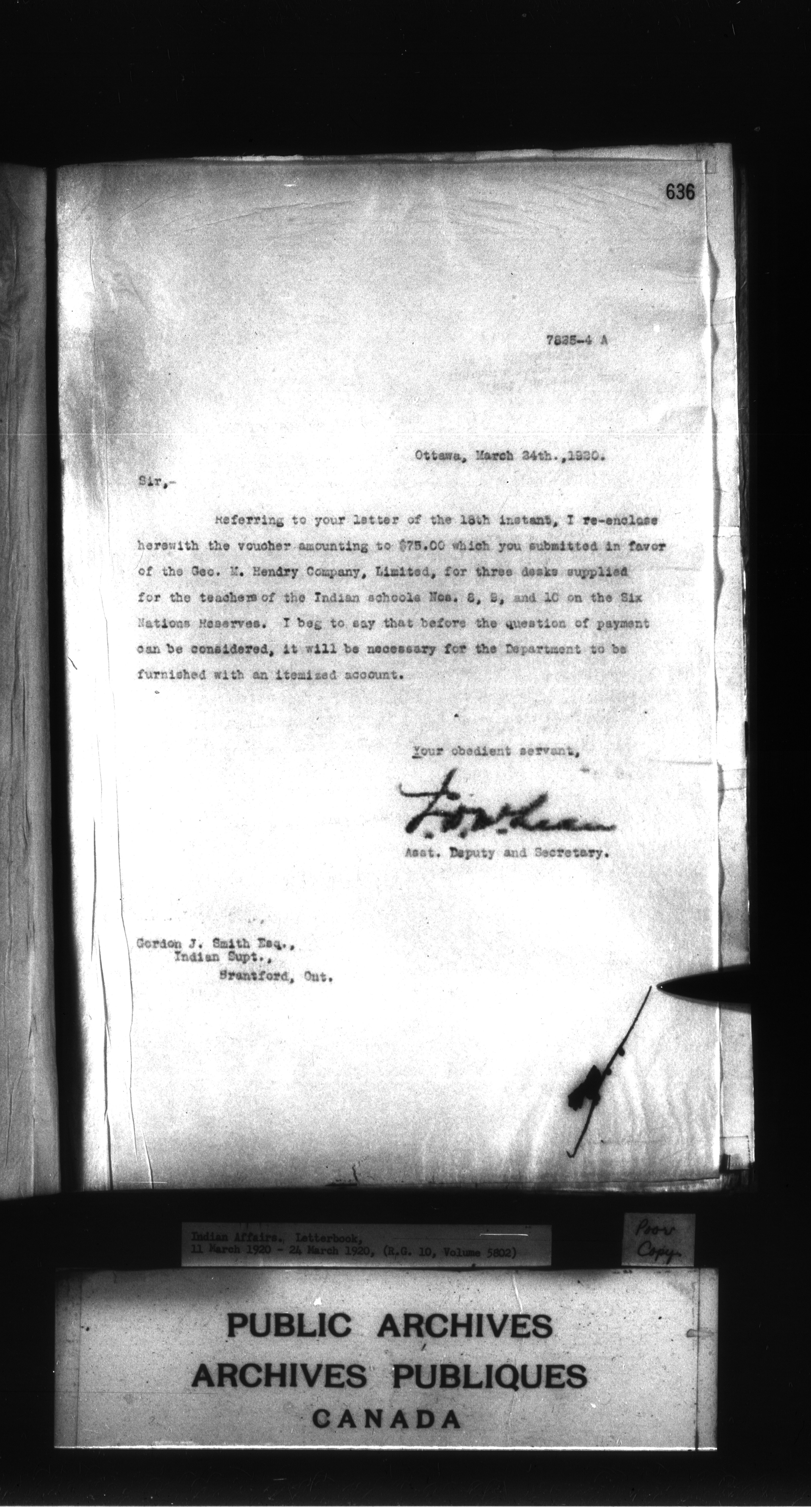 Department of Indian Affairs : Letterbooks of out-going correspondence relating to the administration of Indian Affairs in both eastern and western Canada, 1871-1920 - 8986