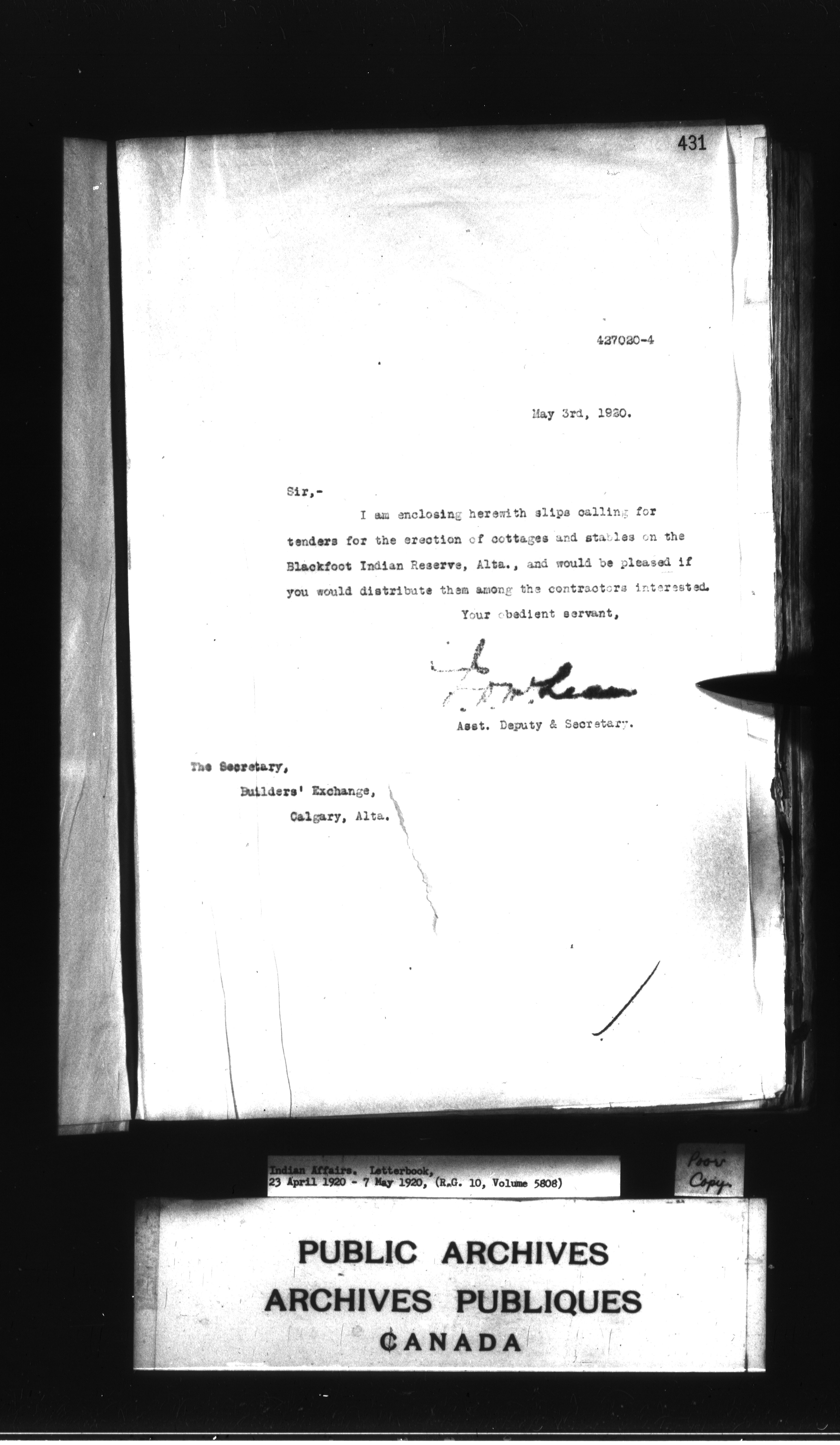 Department of Indian Affairs : Letterbooks of out-going correspondence relating to the administration of Indian Affairs in both eastern and western Canada, 1871-1920 - 8988