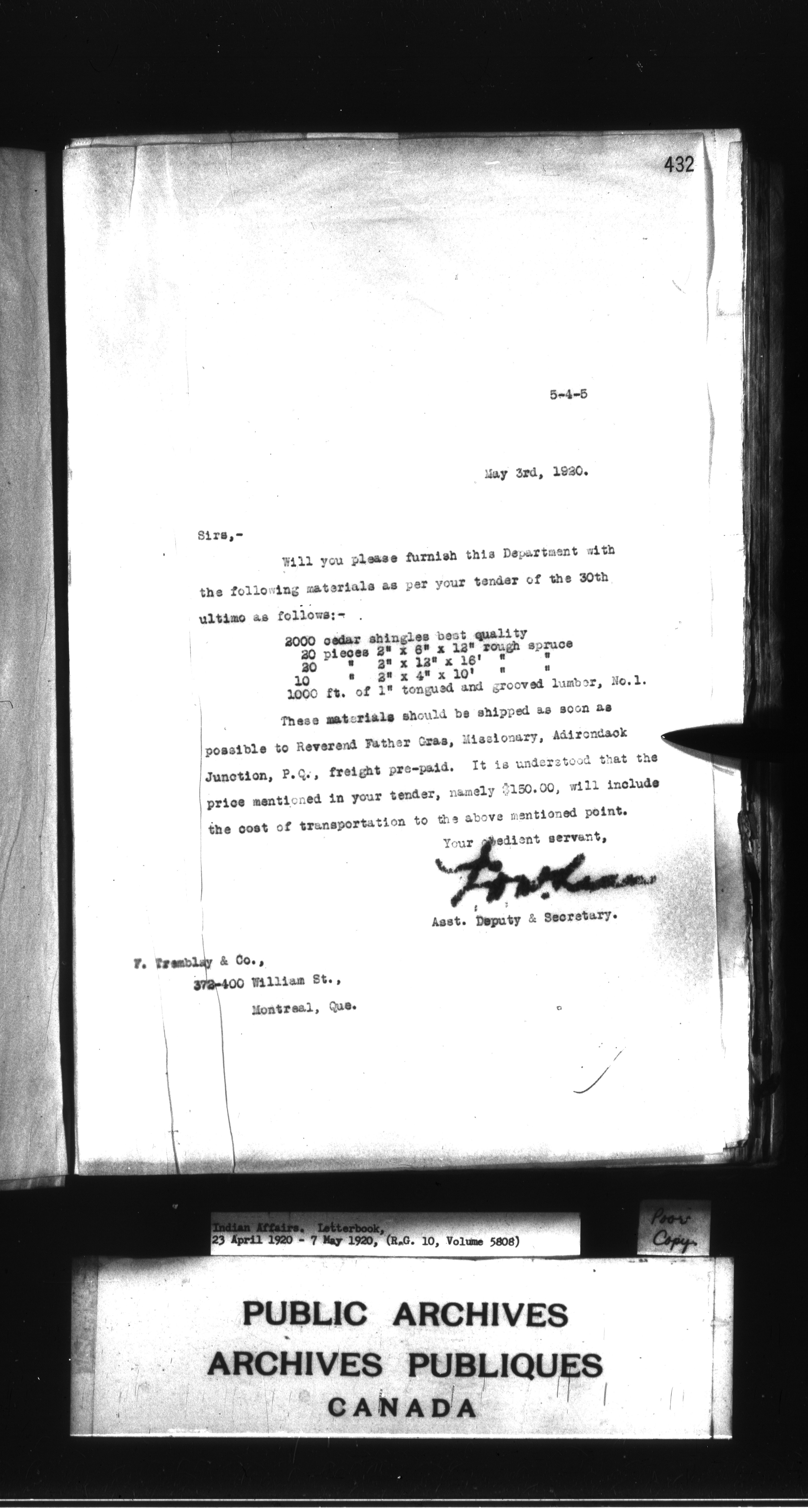 Department of Indian Affairs : Letterbooks of out-going correspondence relating to the administration of Indian Affairs in both eastern and western Canada, 1871-1920 - 8988