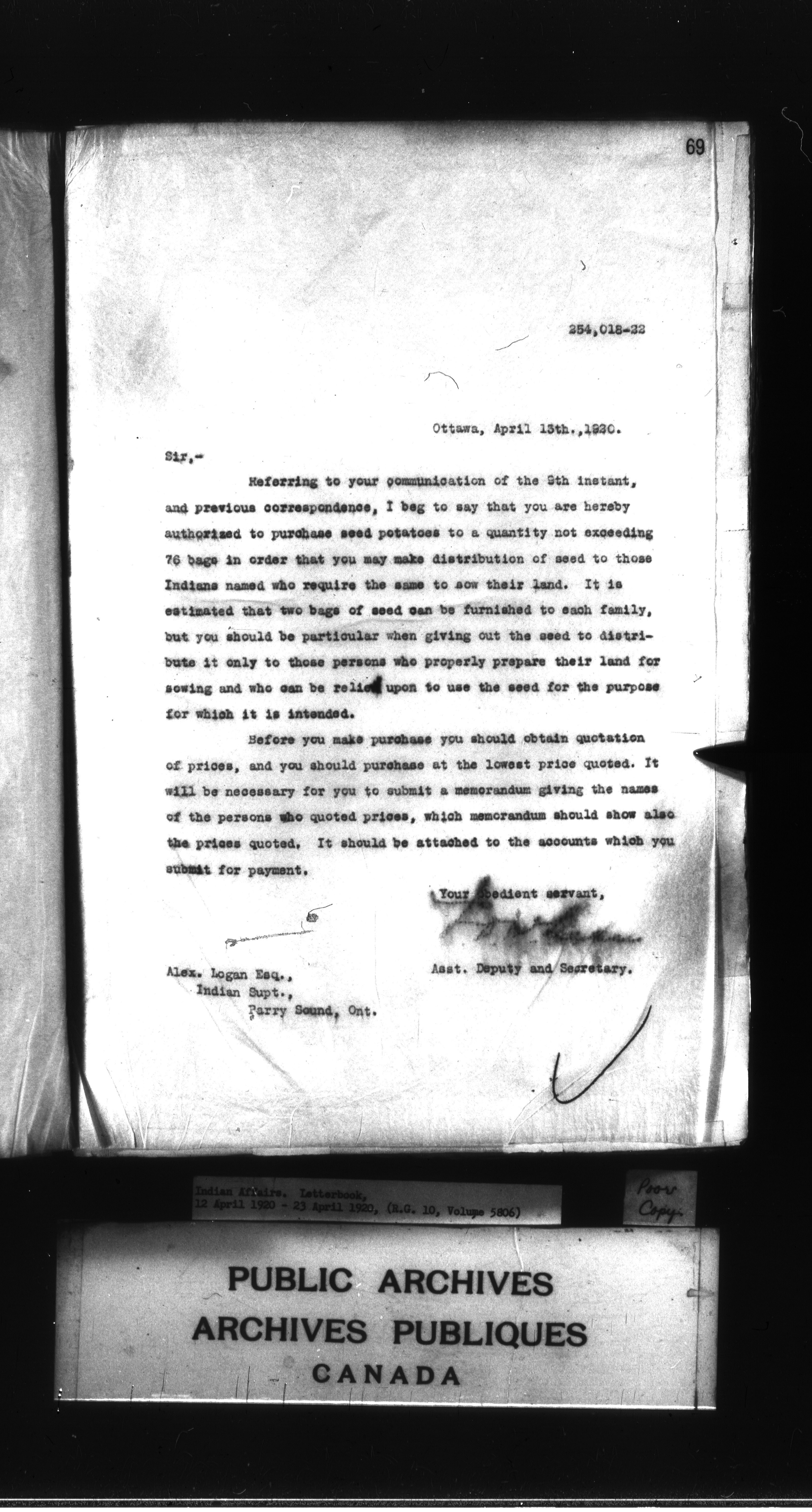 Department of Indian Affairs : Letterbooks of out-going correspondence relating to the administration of Indian Affairs in both eastern and western Canada, 1871-1920 - 8988