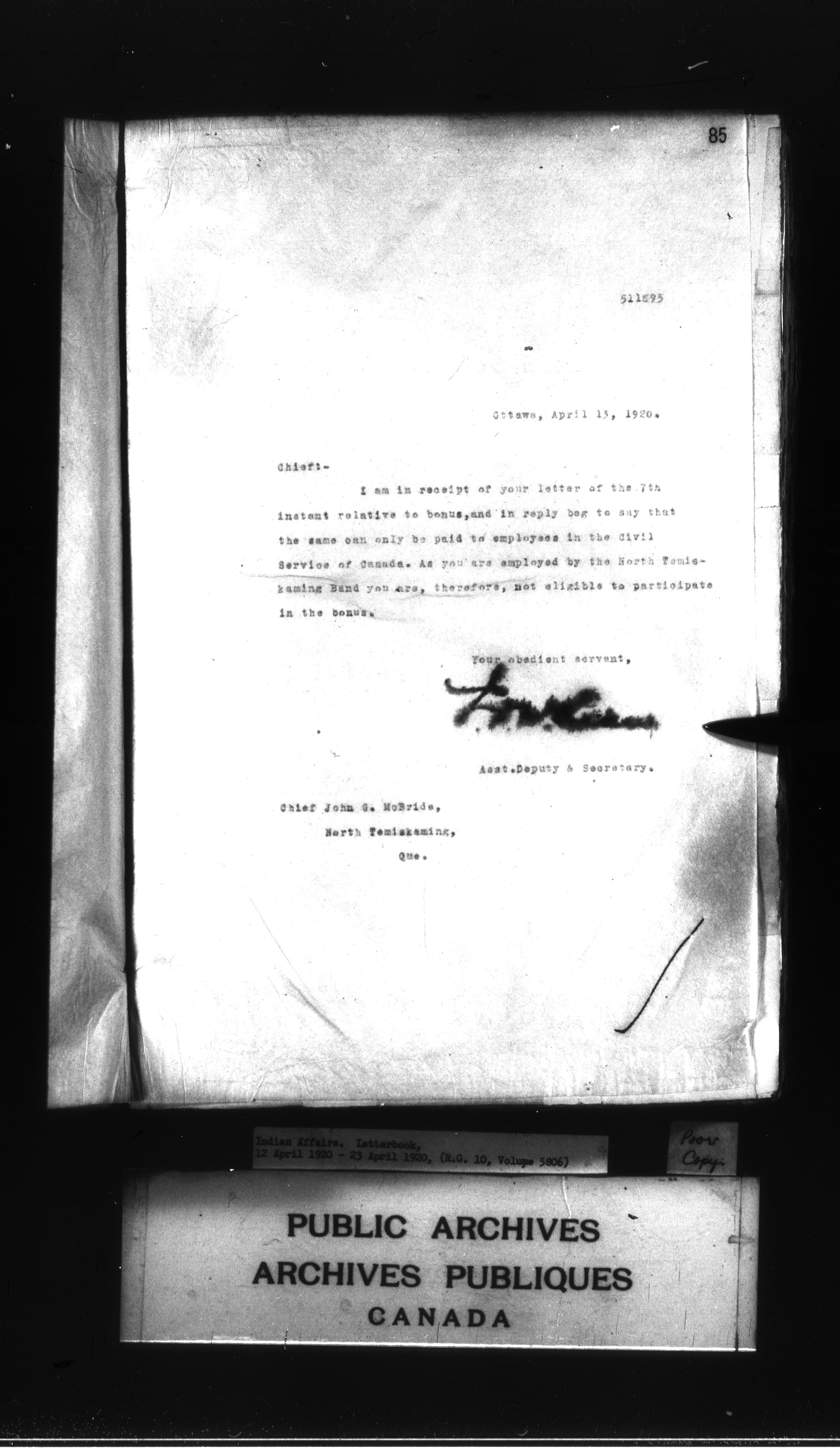 Department of Indian Affairs : Letterbooks of out-going correspondence relating to the administration of Indian Affairs in both eastern and western Canada, 1871-1920 - 8988