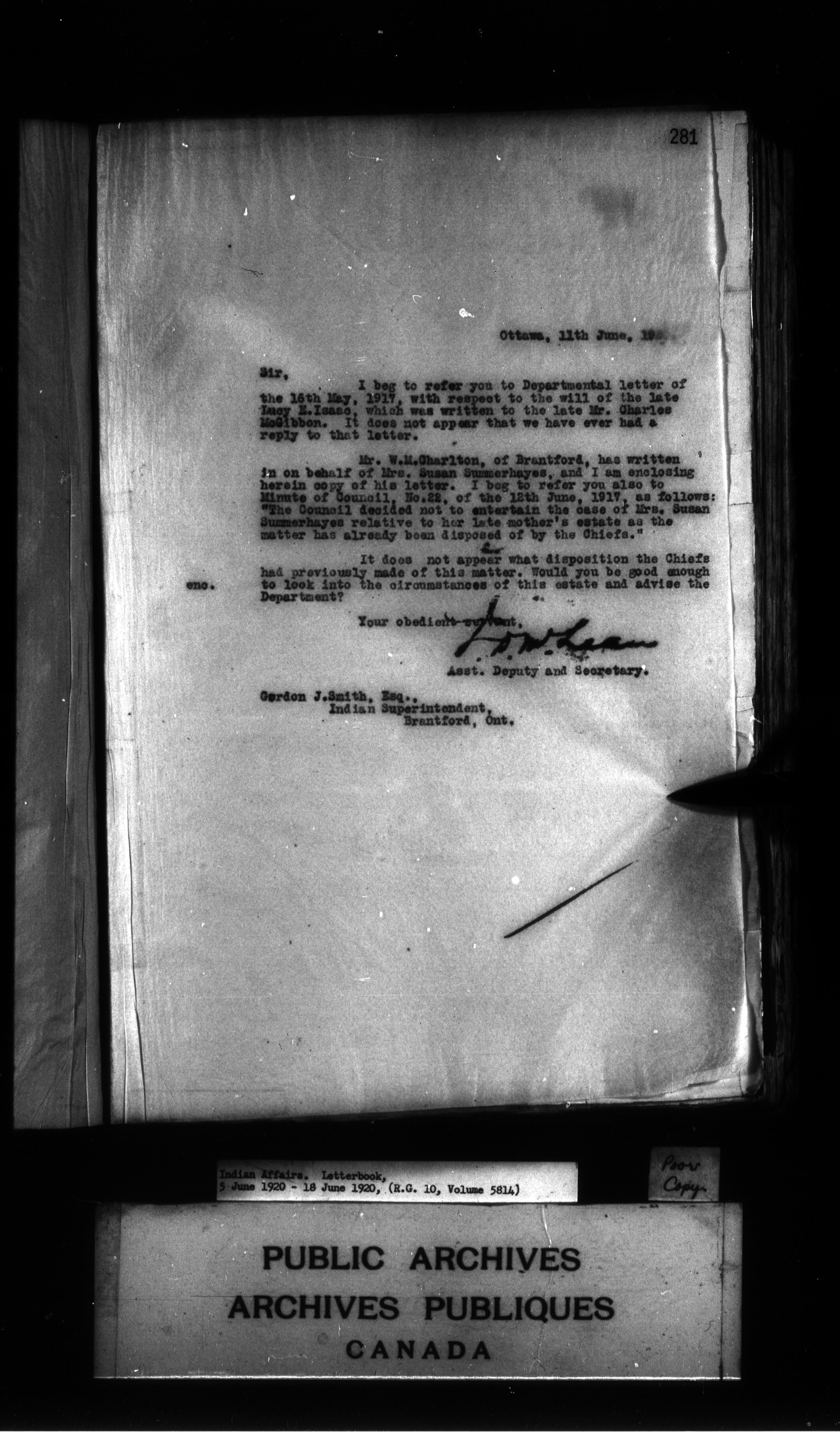 Department of Indian Affairs : Letterbooks of out-going correspondence relating to the administration of Indian Affairs in both eastern and western Canada, 1871-1920 - 8990
