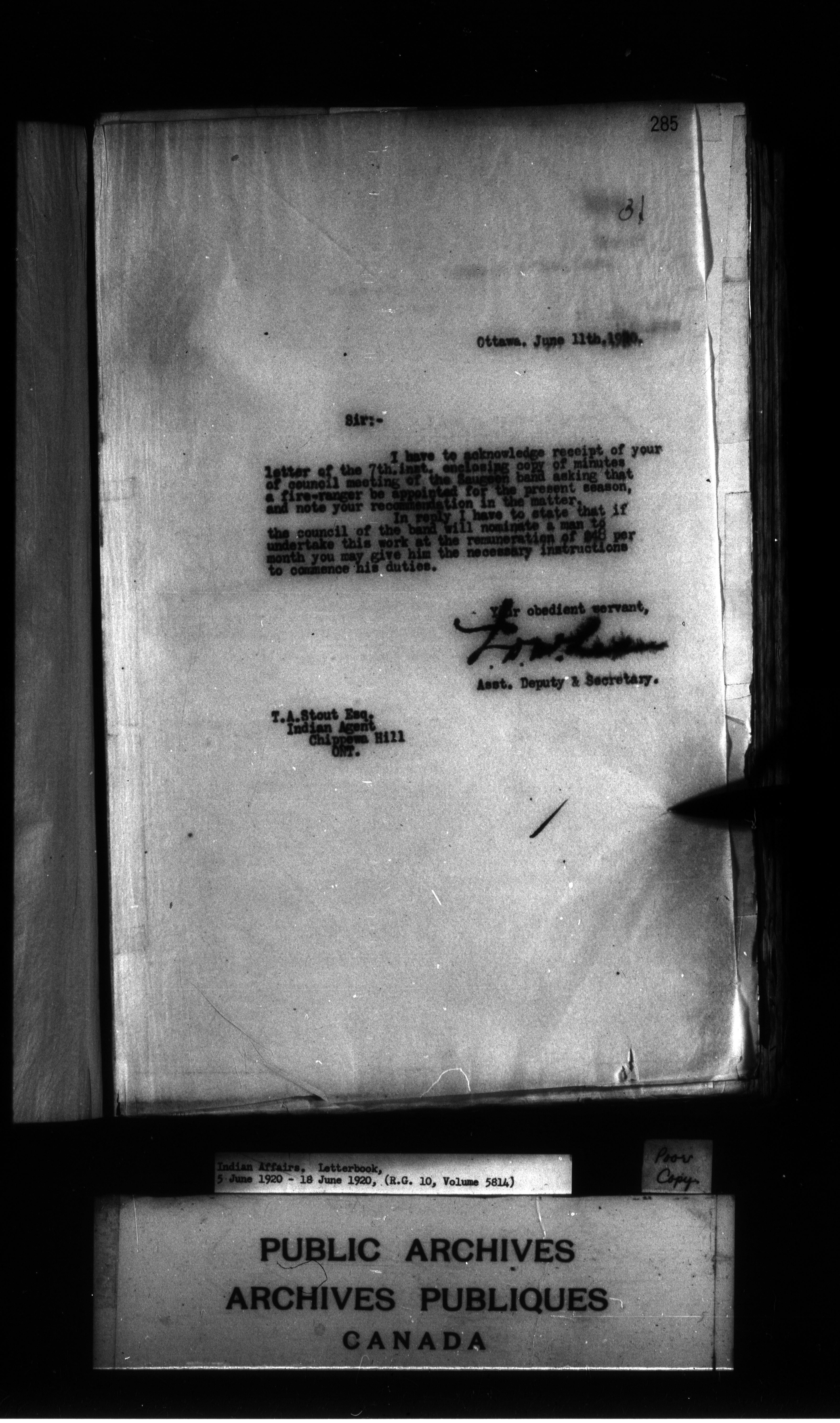 Department of Indian Affairs : Letterbooks of out-going correspondence relating to the administration of Indian Affairs in both eastern and western Canada, 1871-1920 - 8990